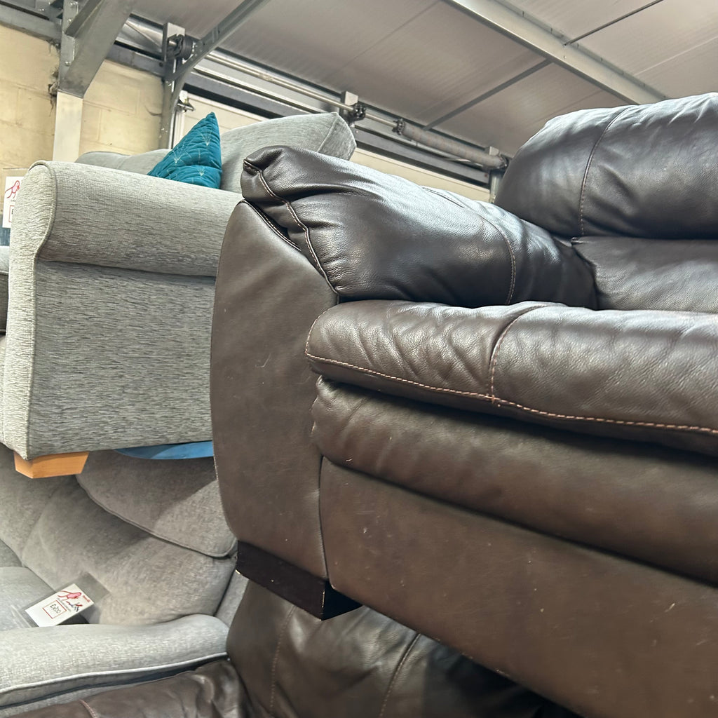 Brown leather 2 and 3 seater sofas.