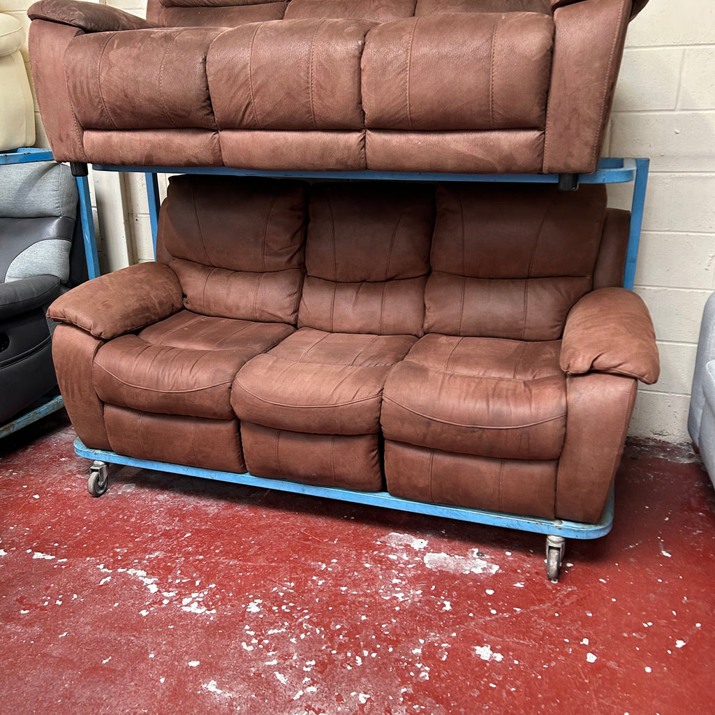 Brown 3 seater sofa with matching 3 seater manual recliner sofa.