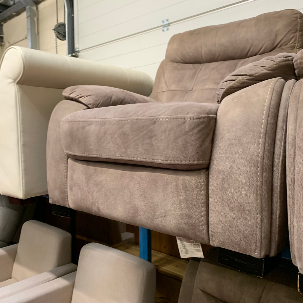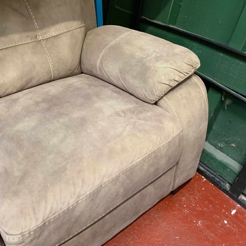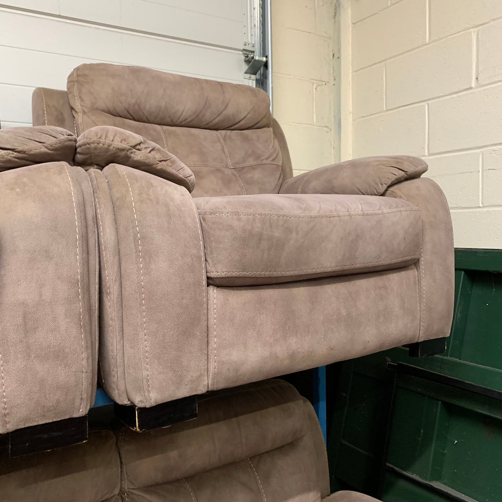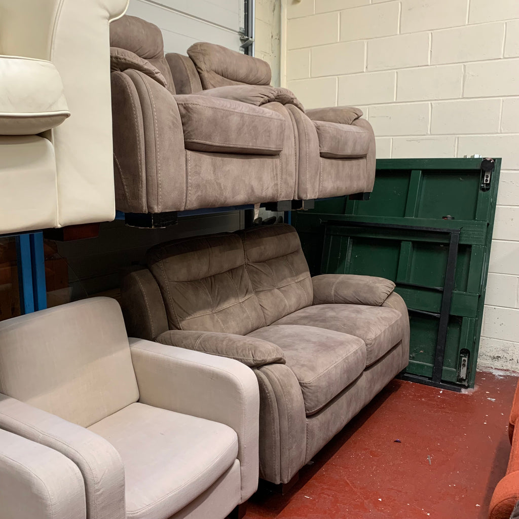 Light brown 2 seater sofa with 2x matching armchairs.