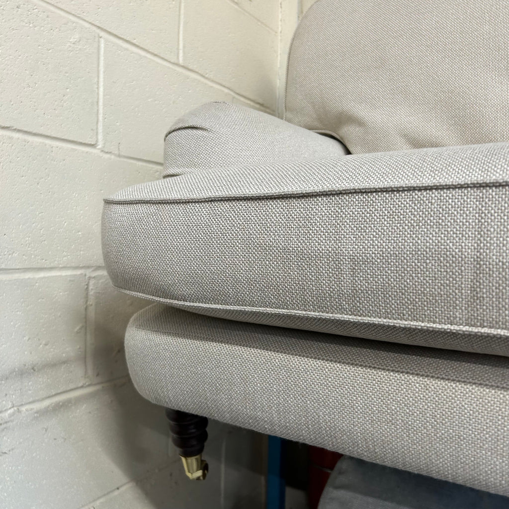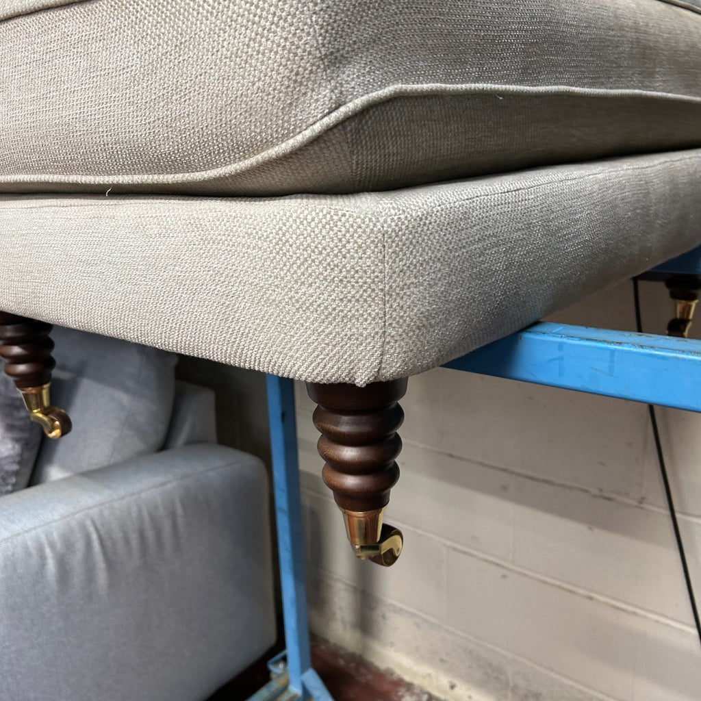 Cream 3 seater sofa on castors with matching footstool.