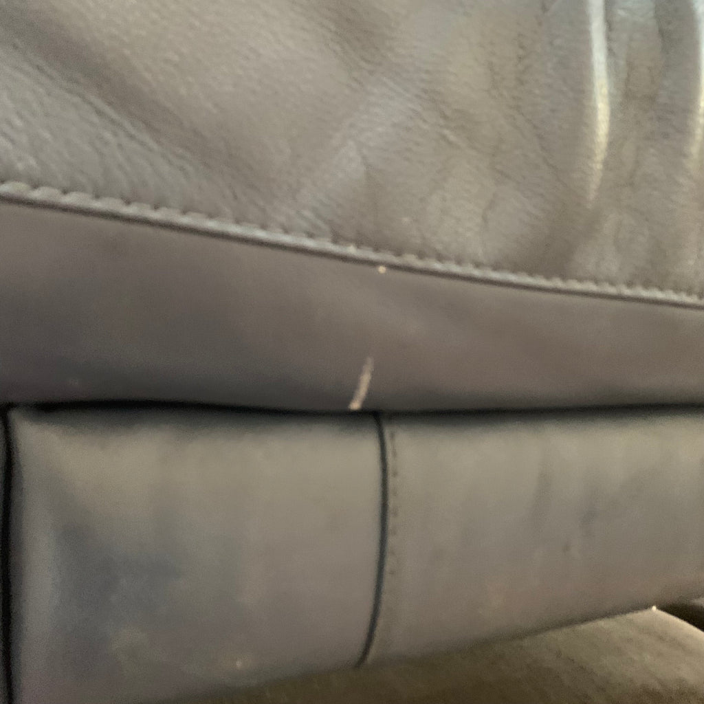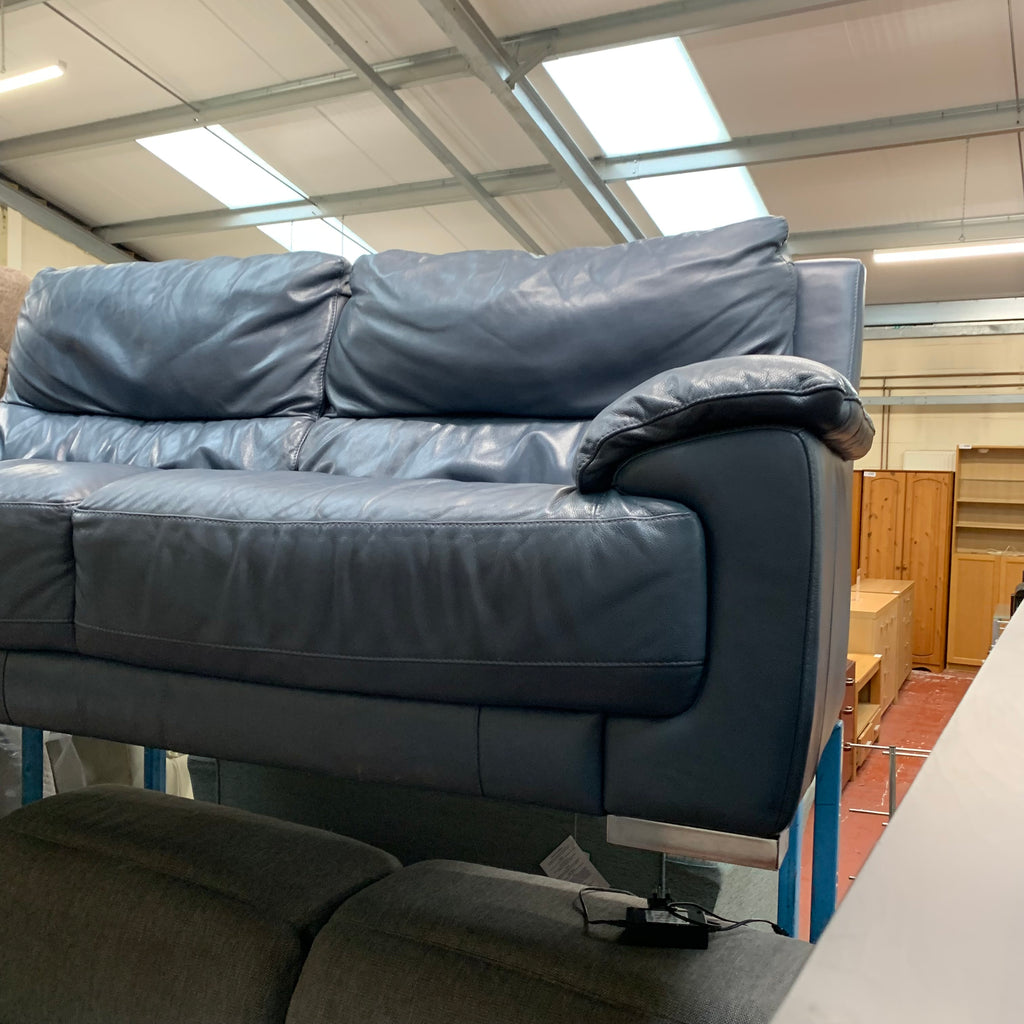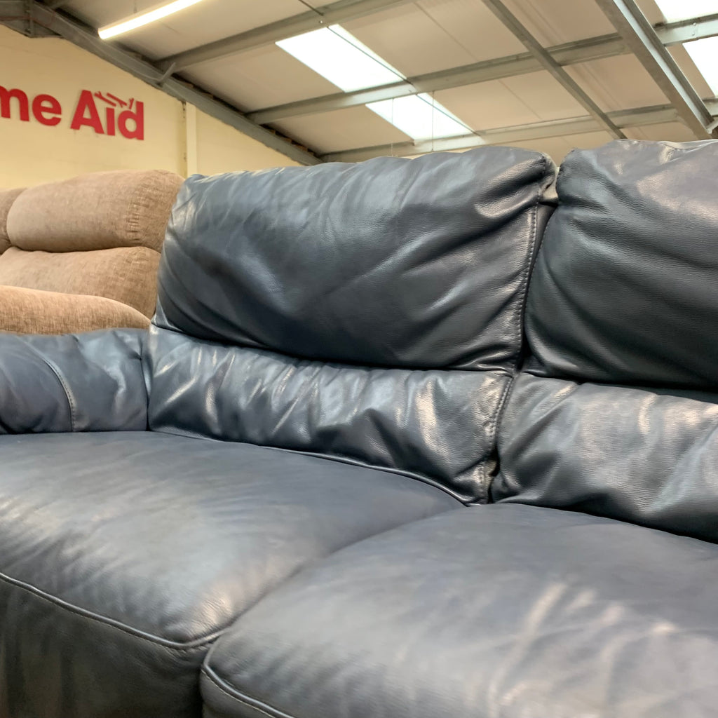 Blue leather 4 seater sofa.