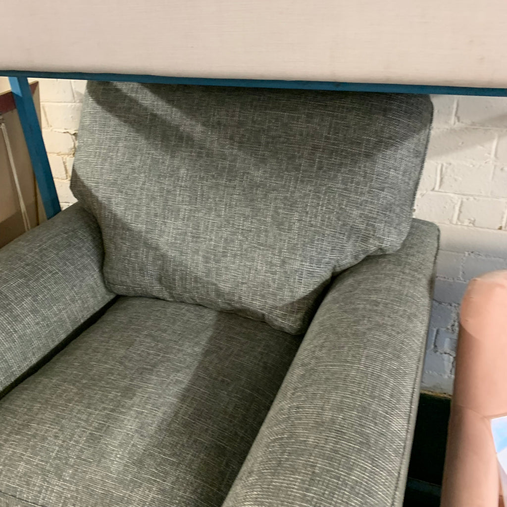 Large grey armchair.