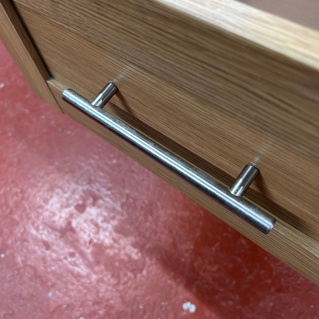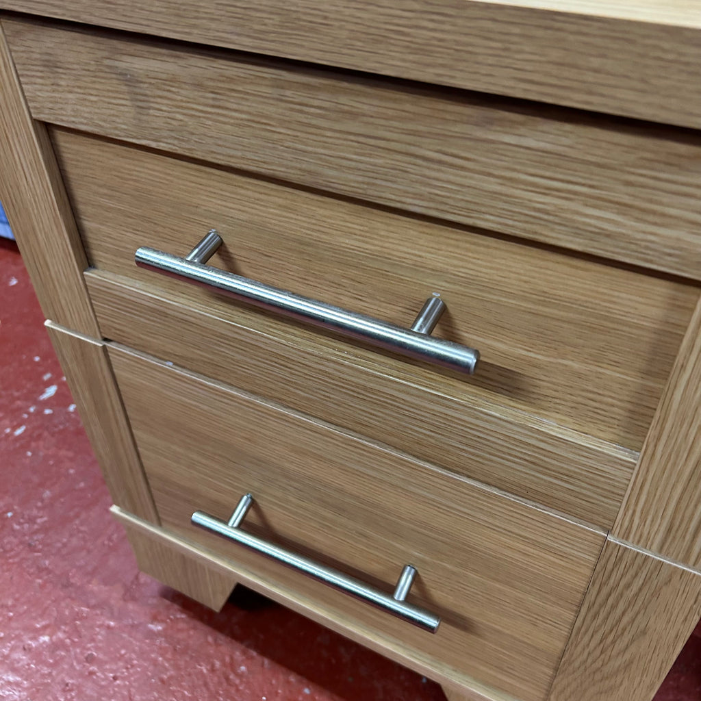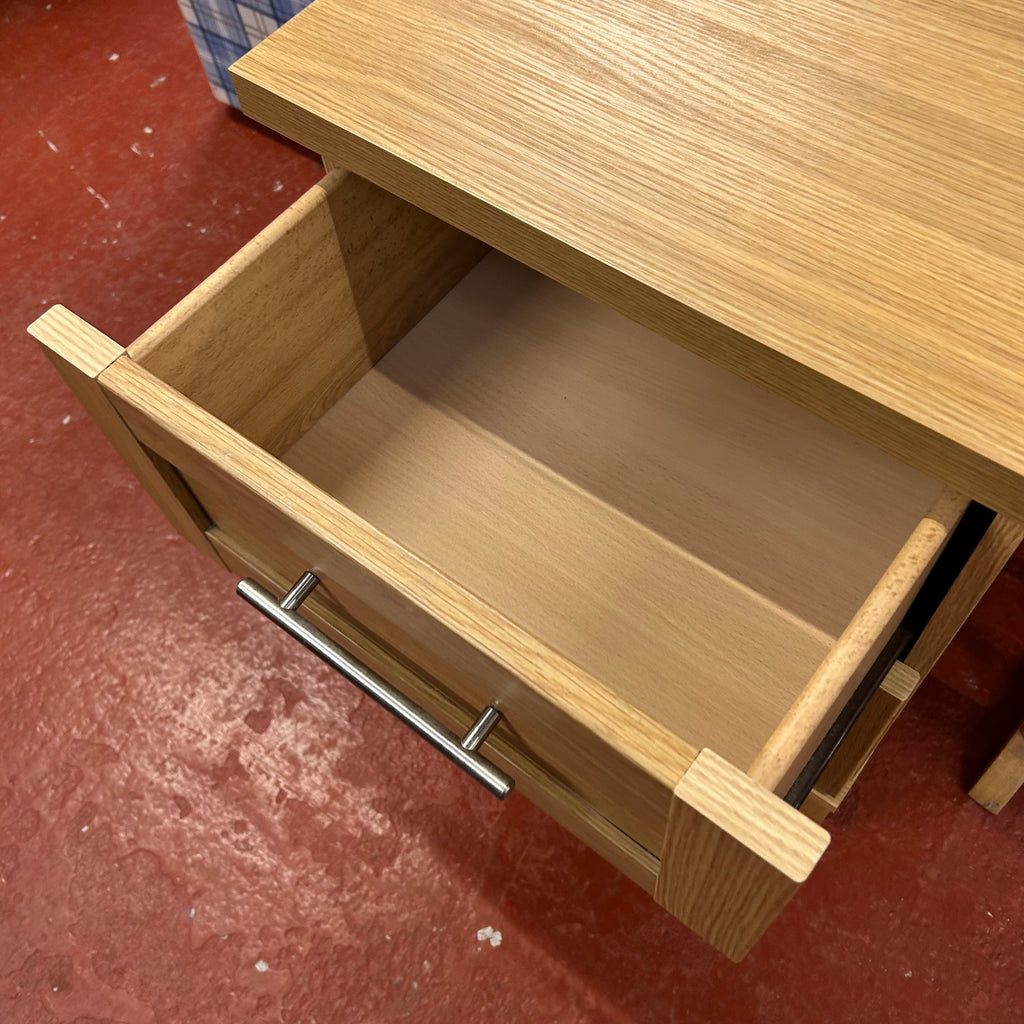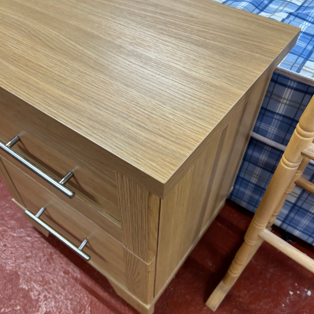 1x light wood bedside cabinet with 2x drawers.