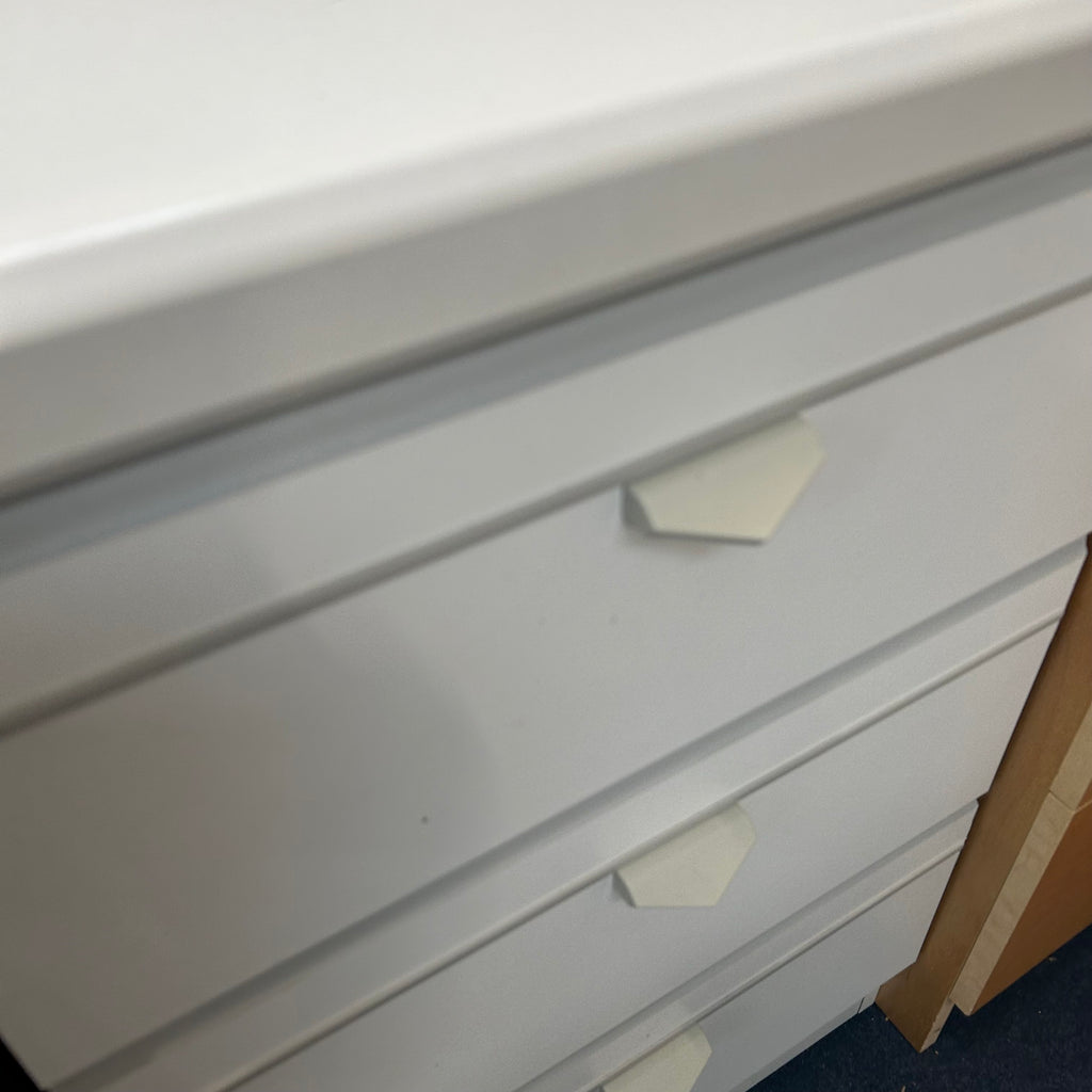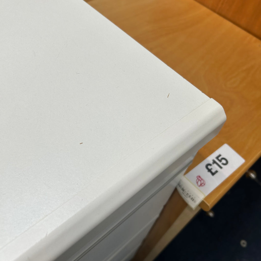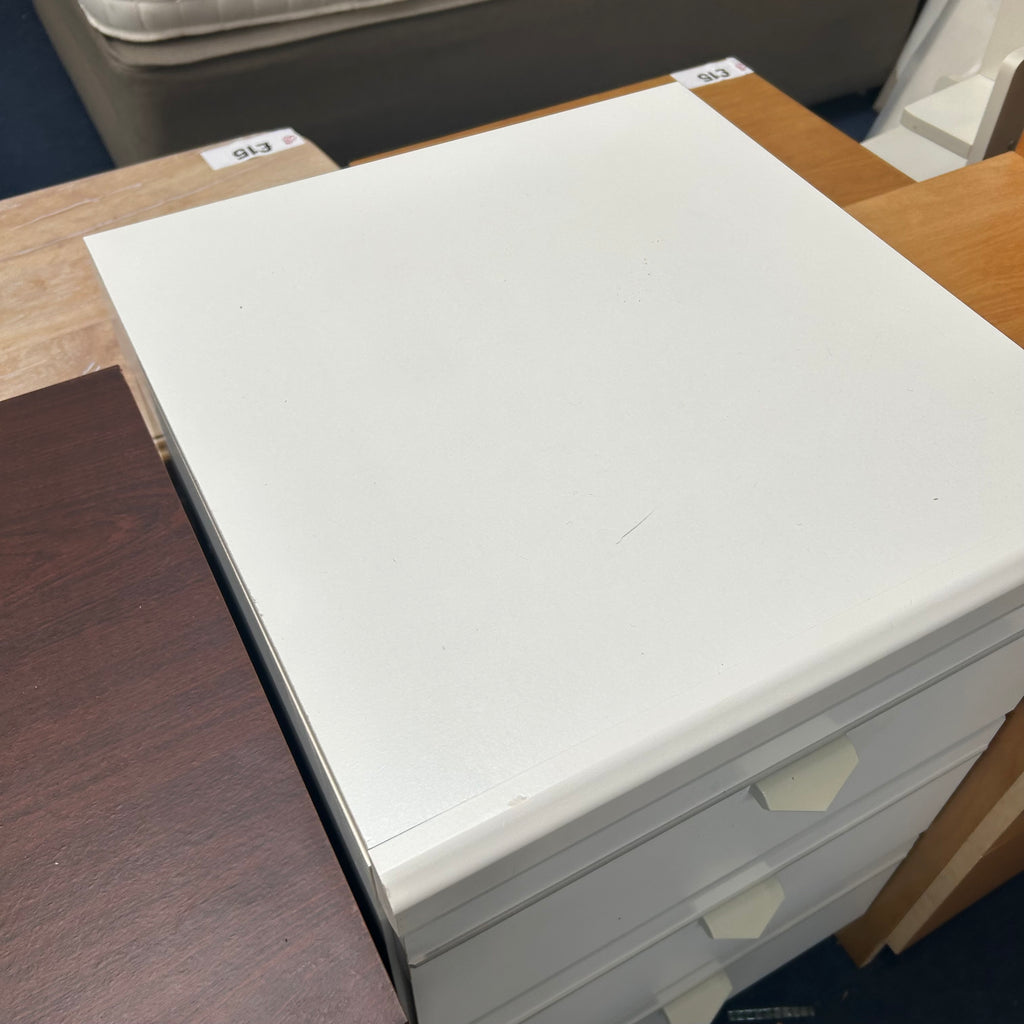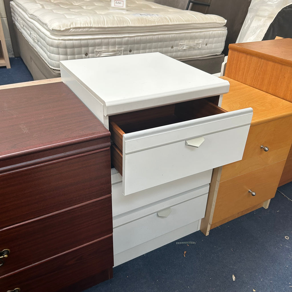 White bedside cabinet with 3x drawers.