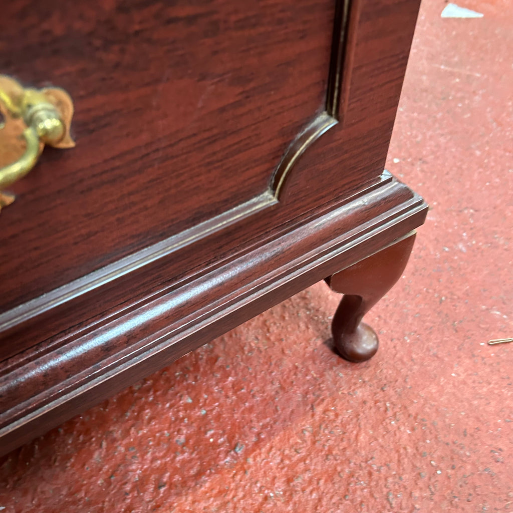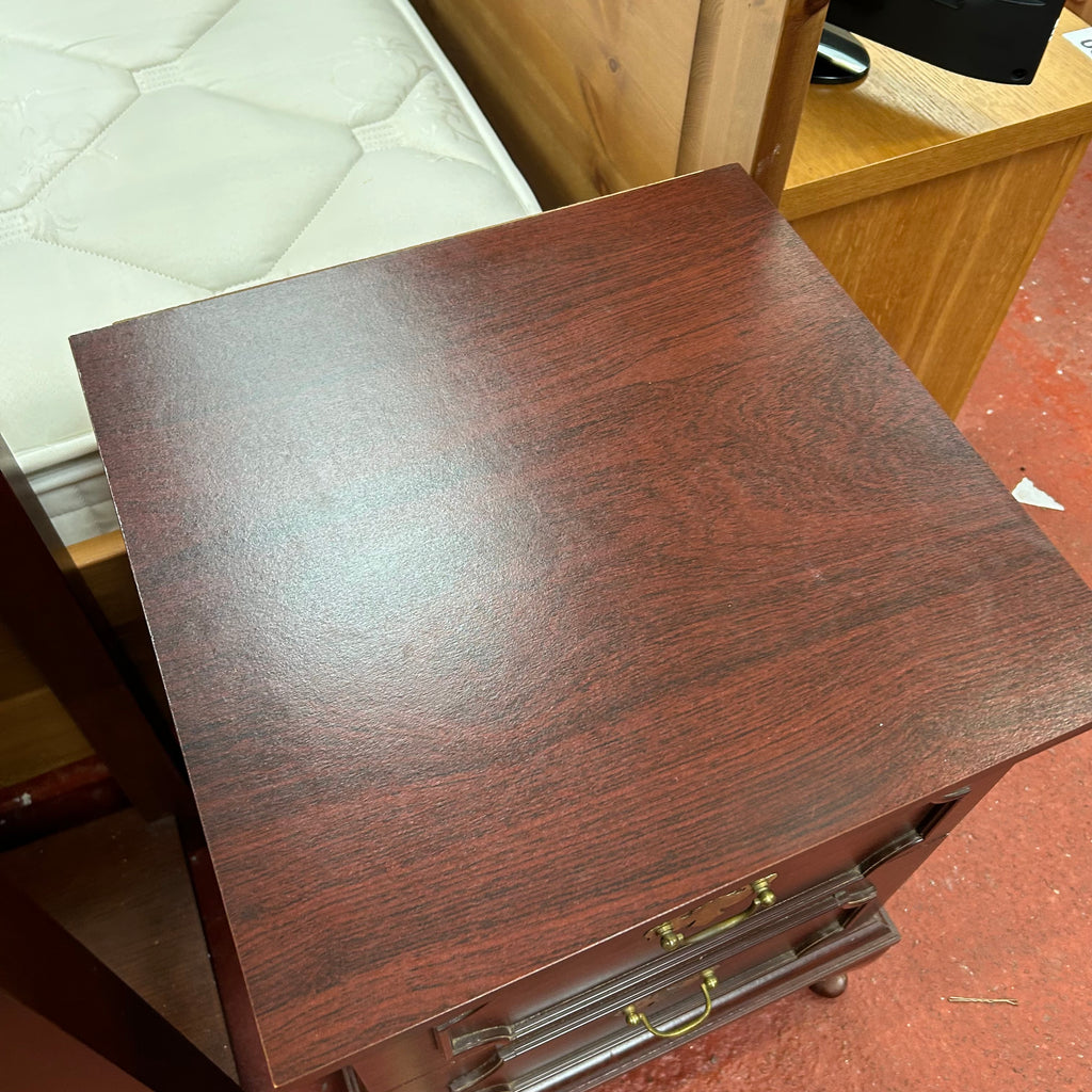 1x Dark wood bedside cabinet with 2x drawers.