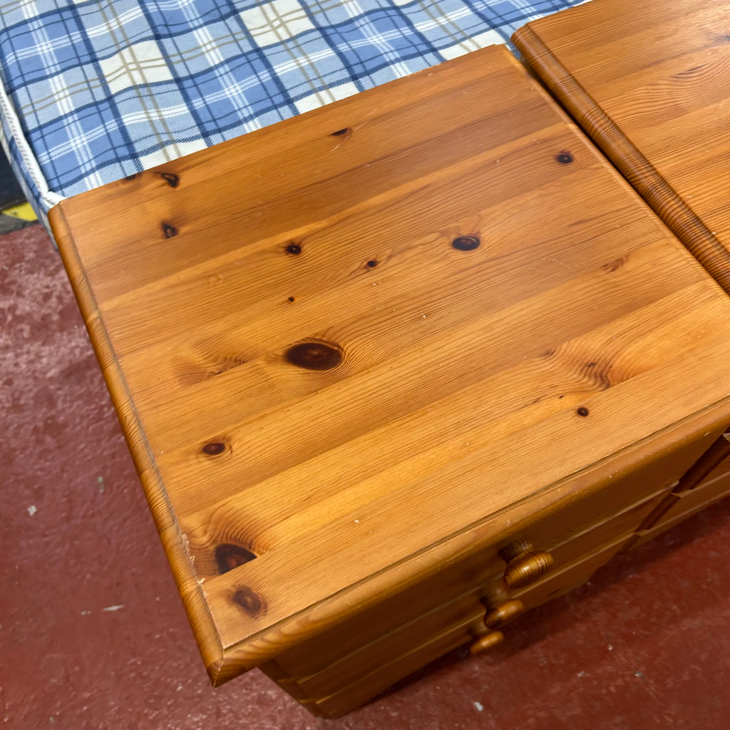 2x pine bedside cabinets with 3x drawers each.