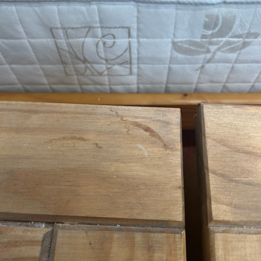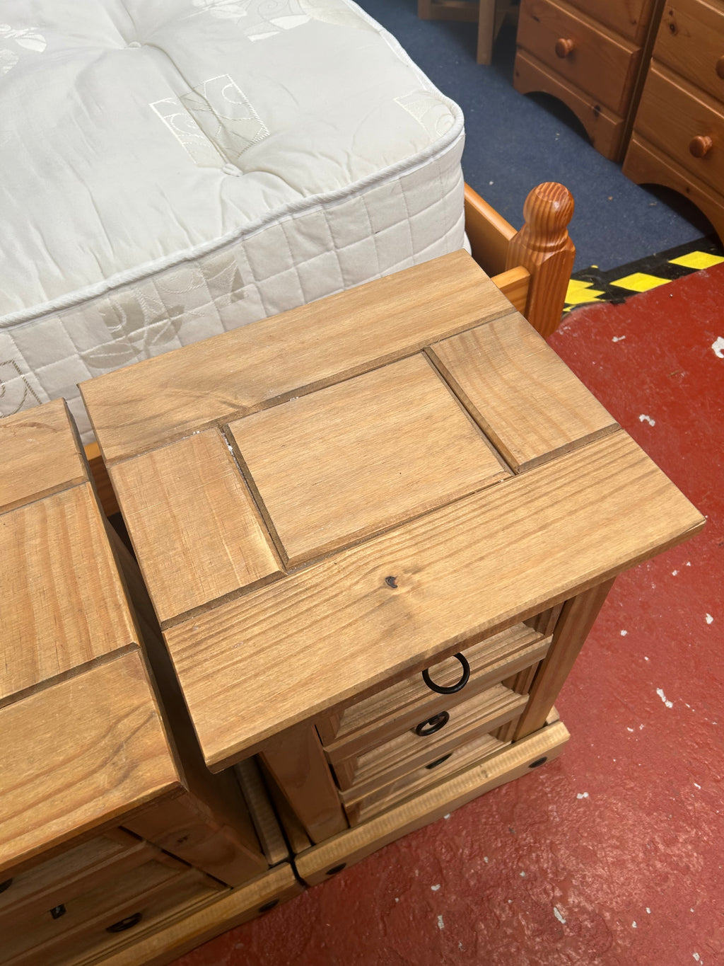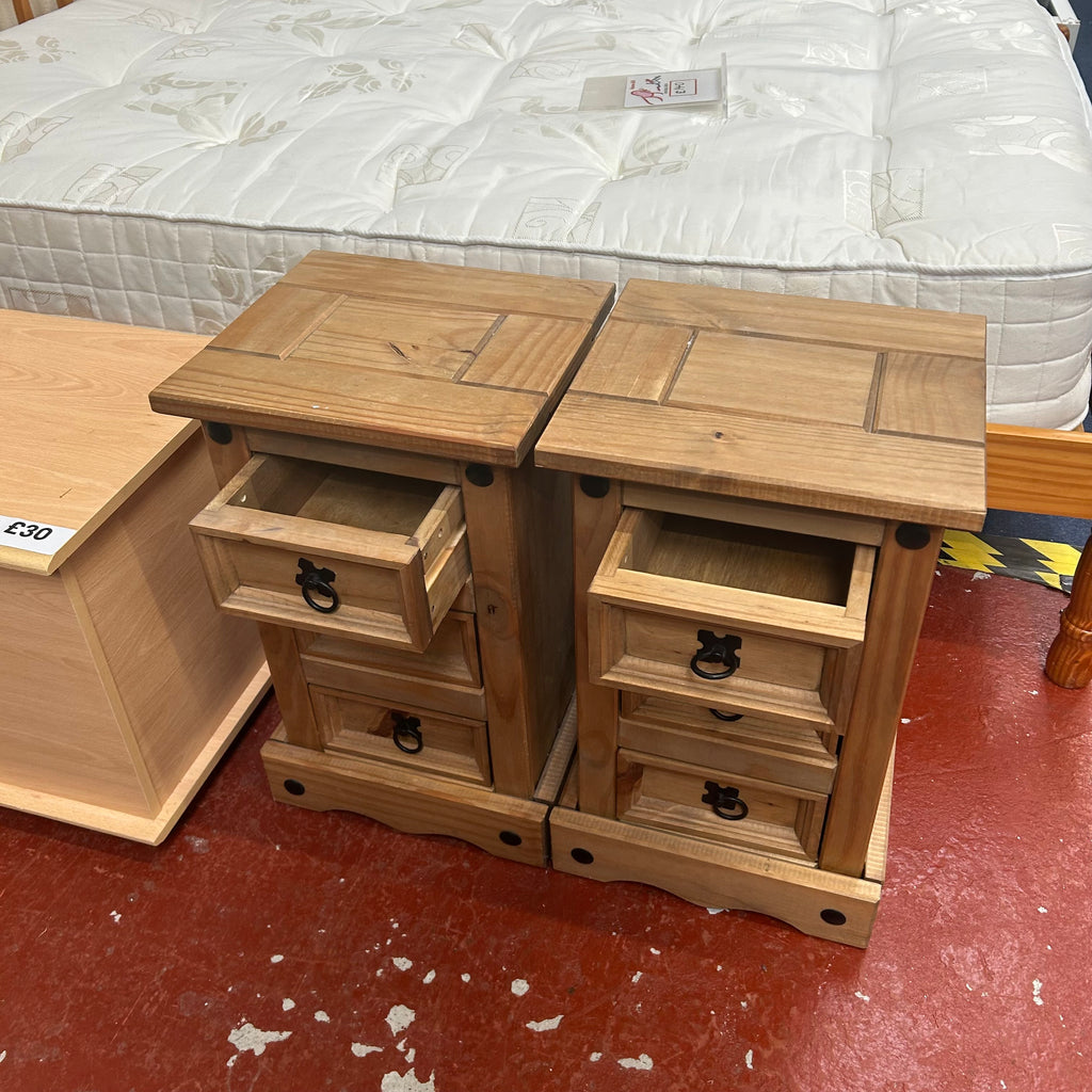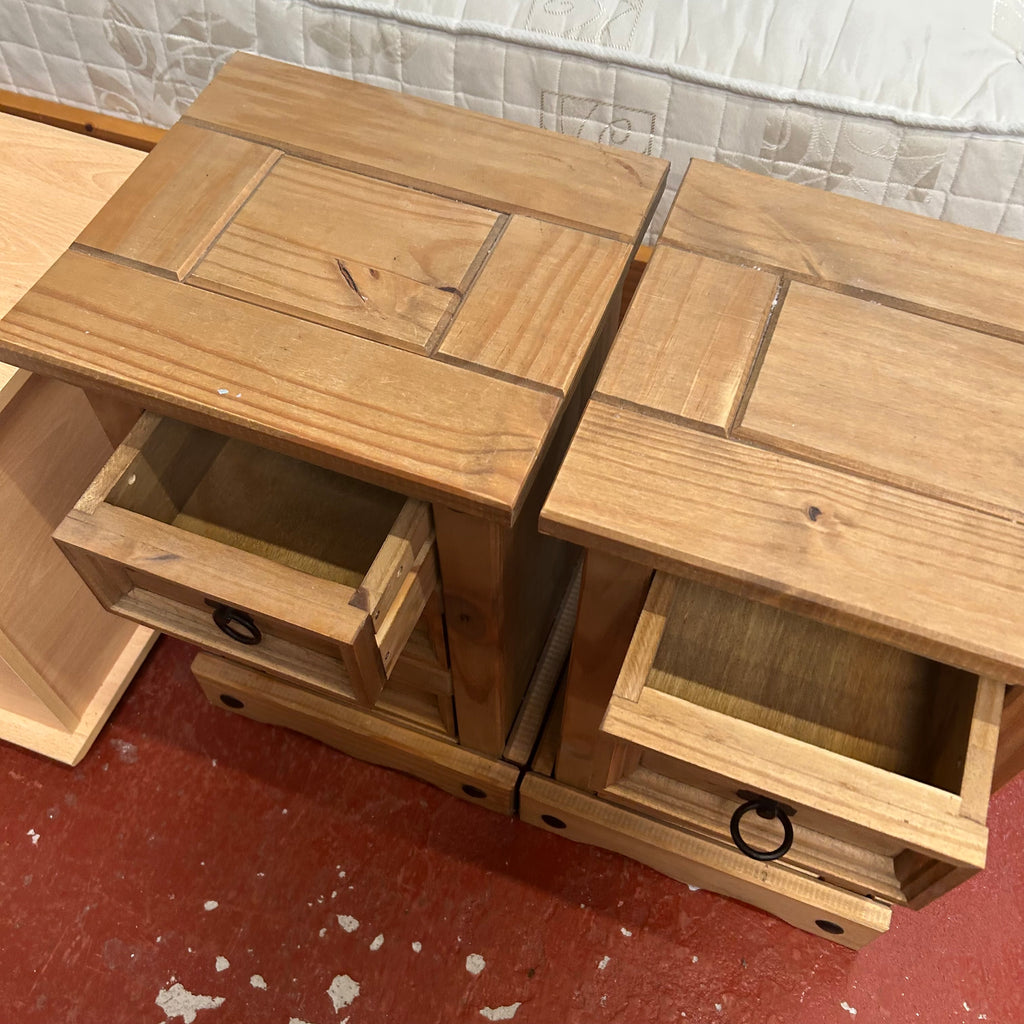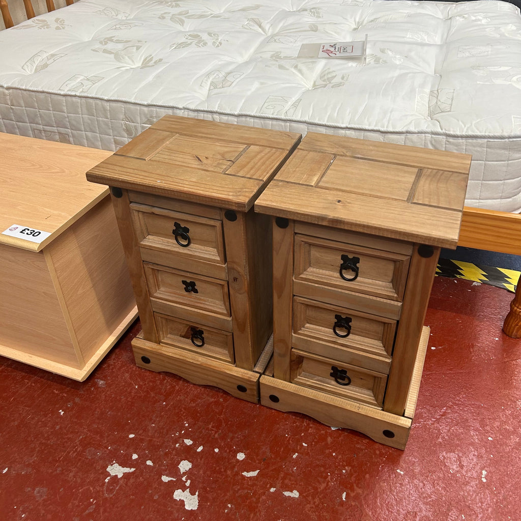 2x wooden bedside cabinets with 3x drawers each.
