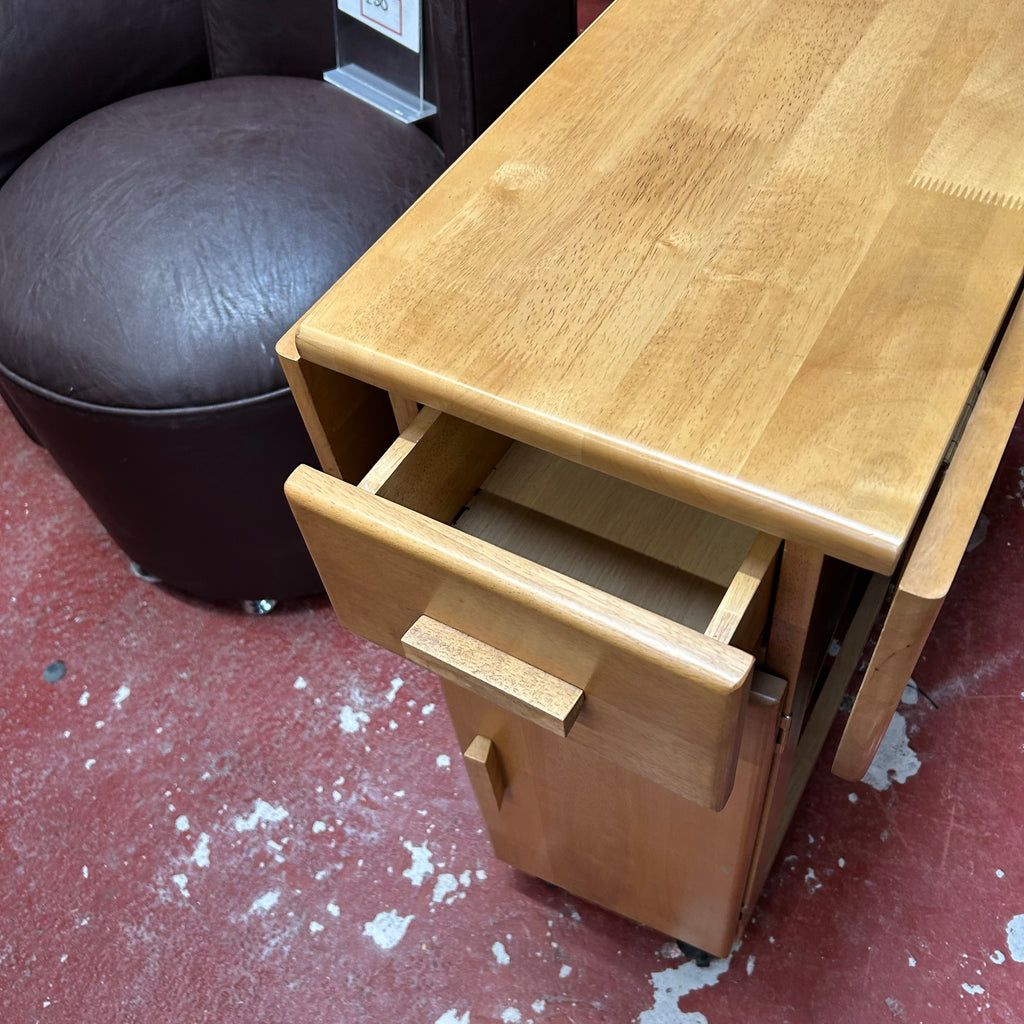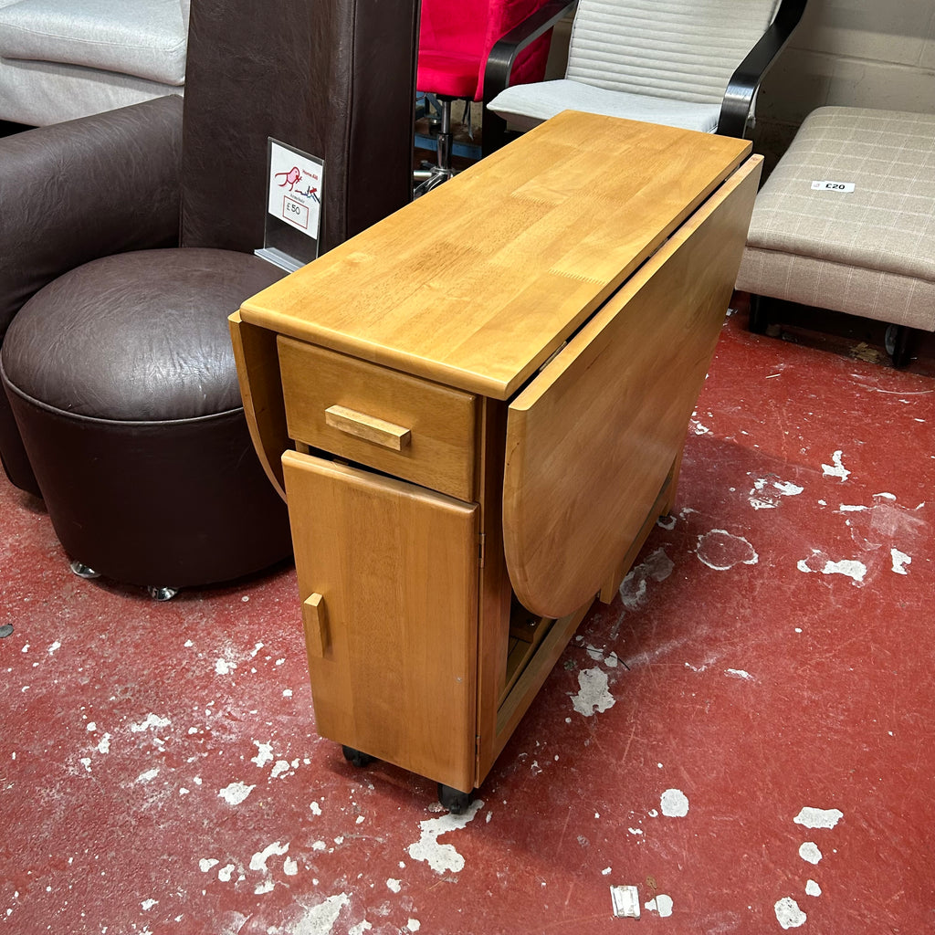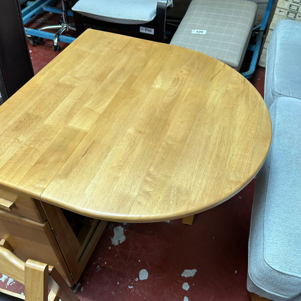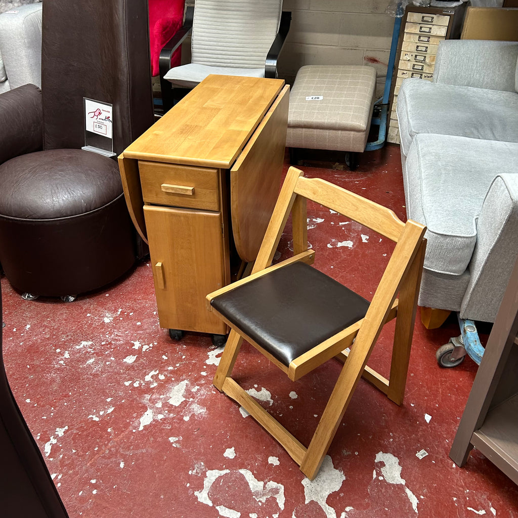 Wooden butterfly table with 1x drawer and 4x folding chairs.