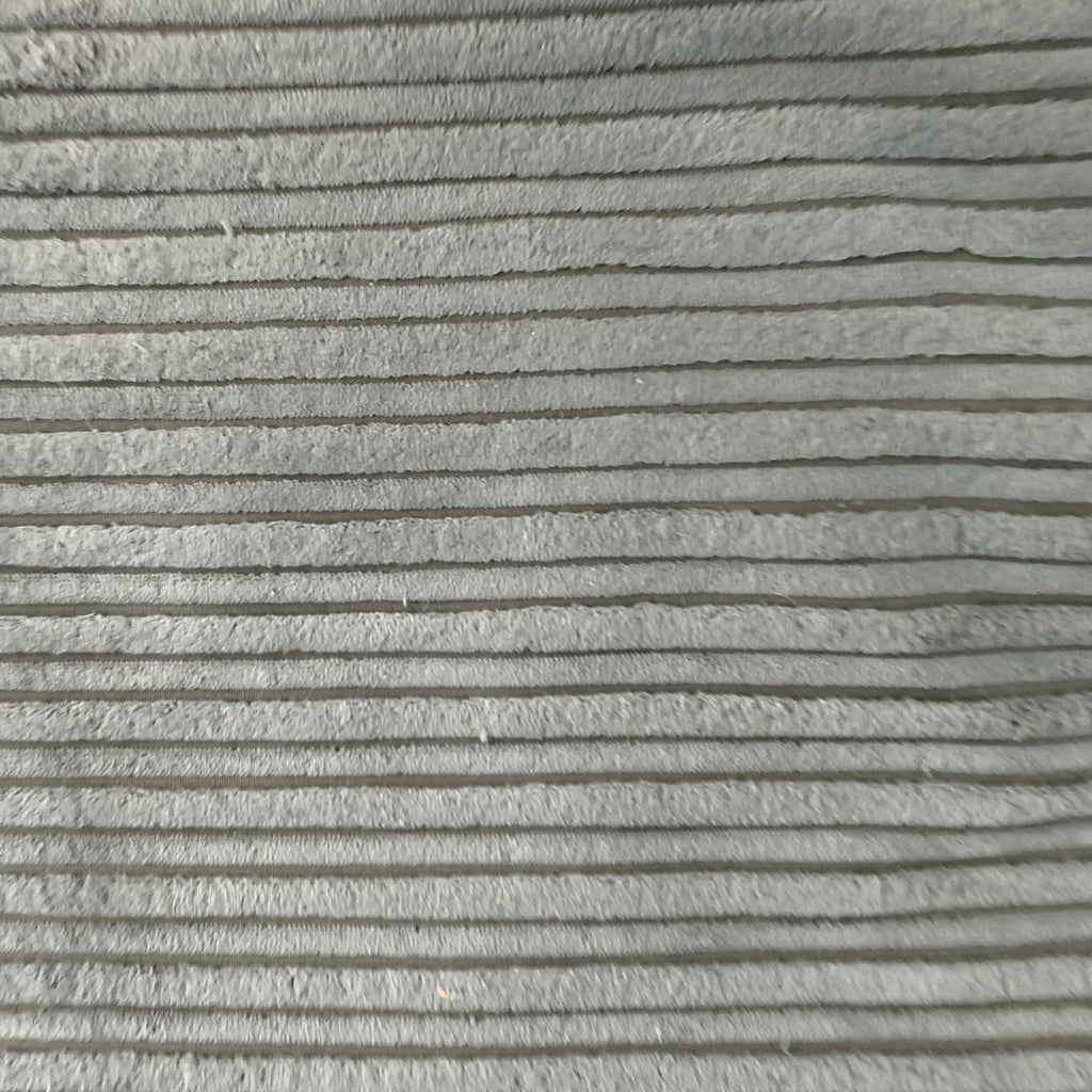 Grey cord corner sofa with cushions.
