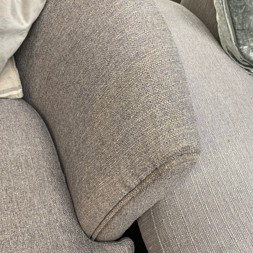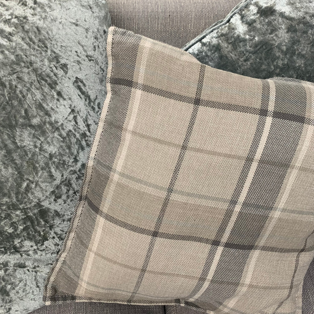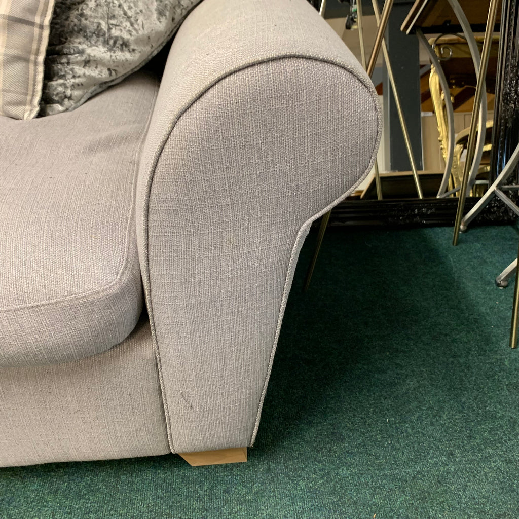 Grey corner sofa with scatter back cushions, Swivel chair and footstool