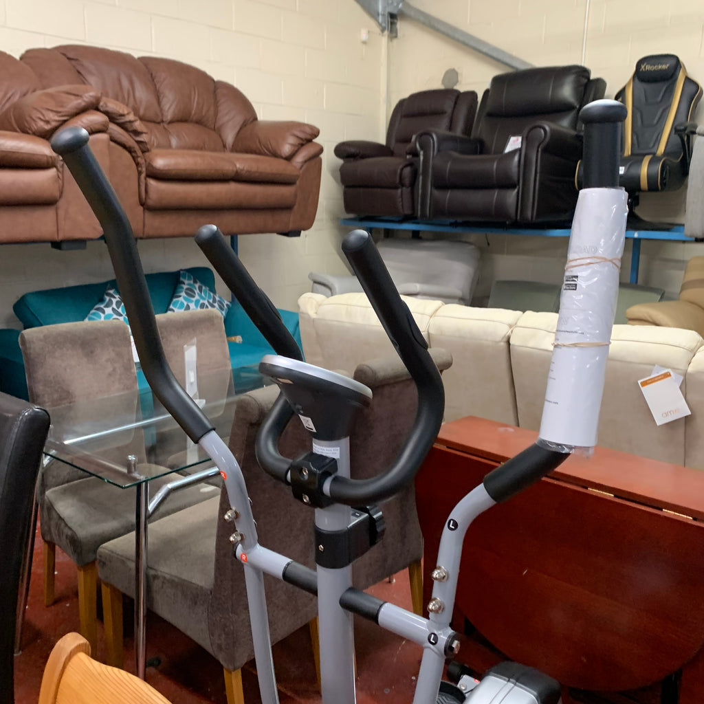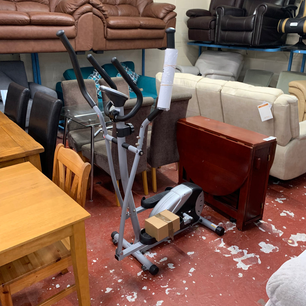 Silver and black battery powered cross trainer.