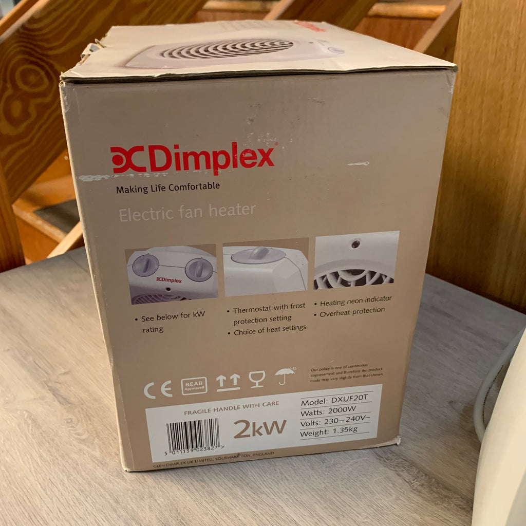 White Dimplex 2000w electric fan heater. Fully tested. 28 days warranty.