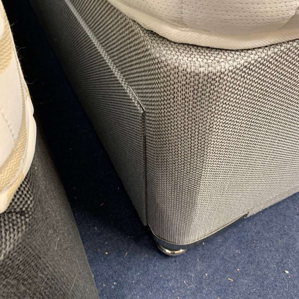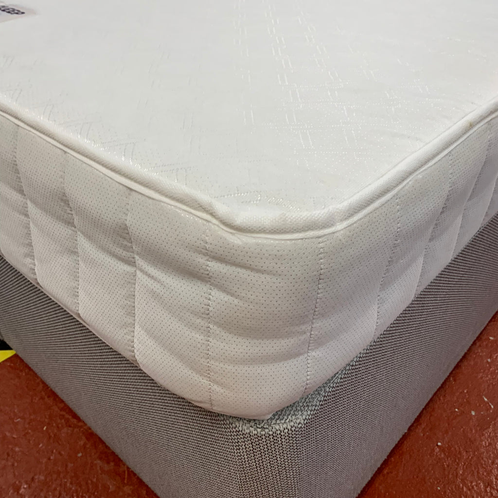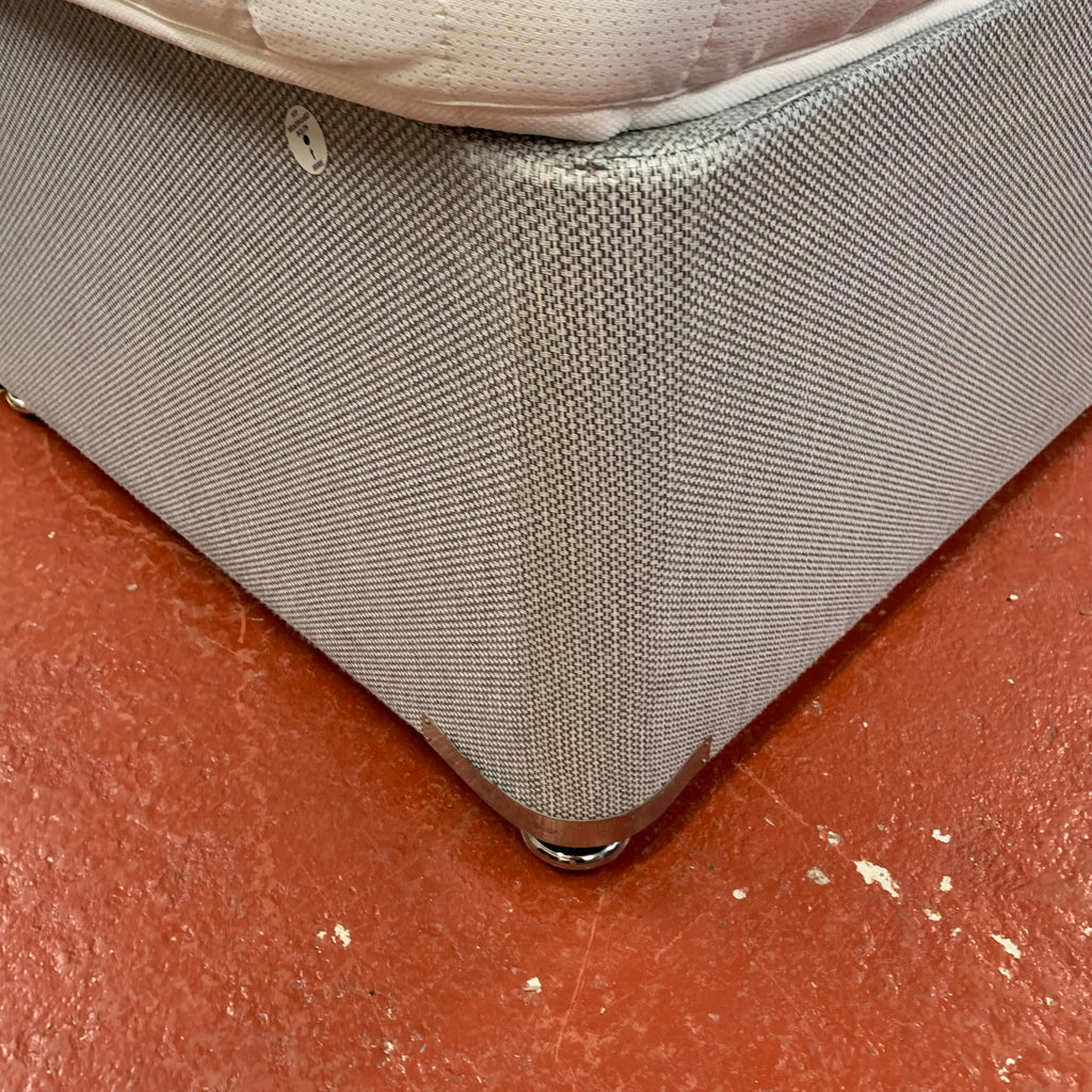 Light grey double divan bed base with 2x drawers, charcoal grey headboard with diamante details and mattress.