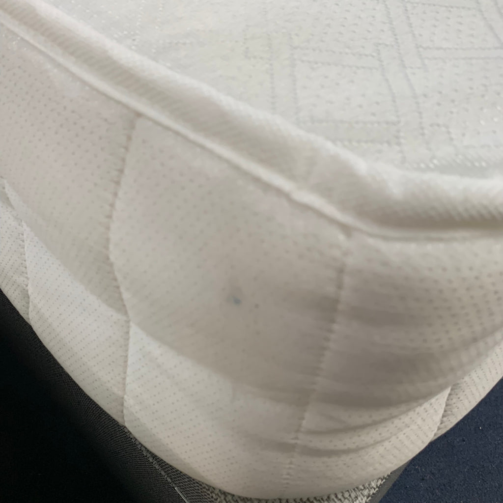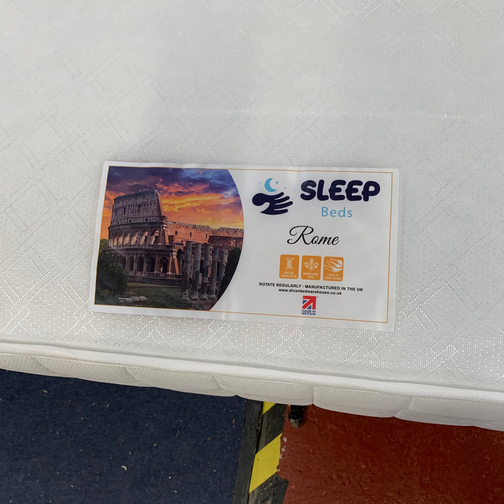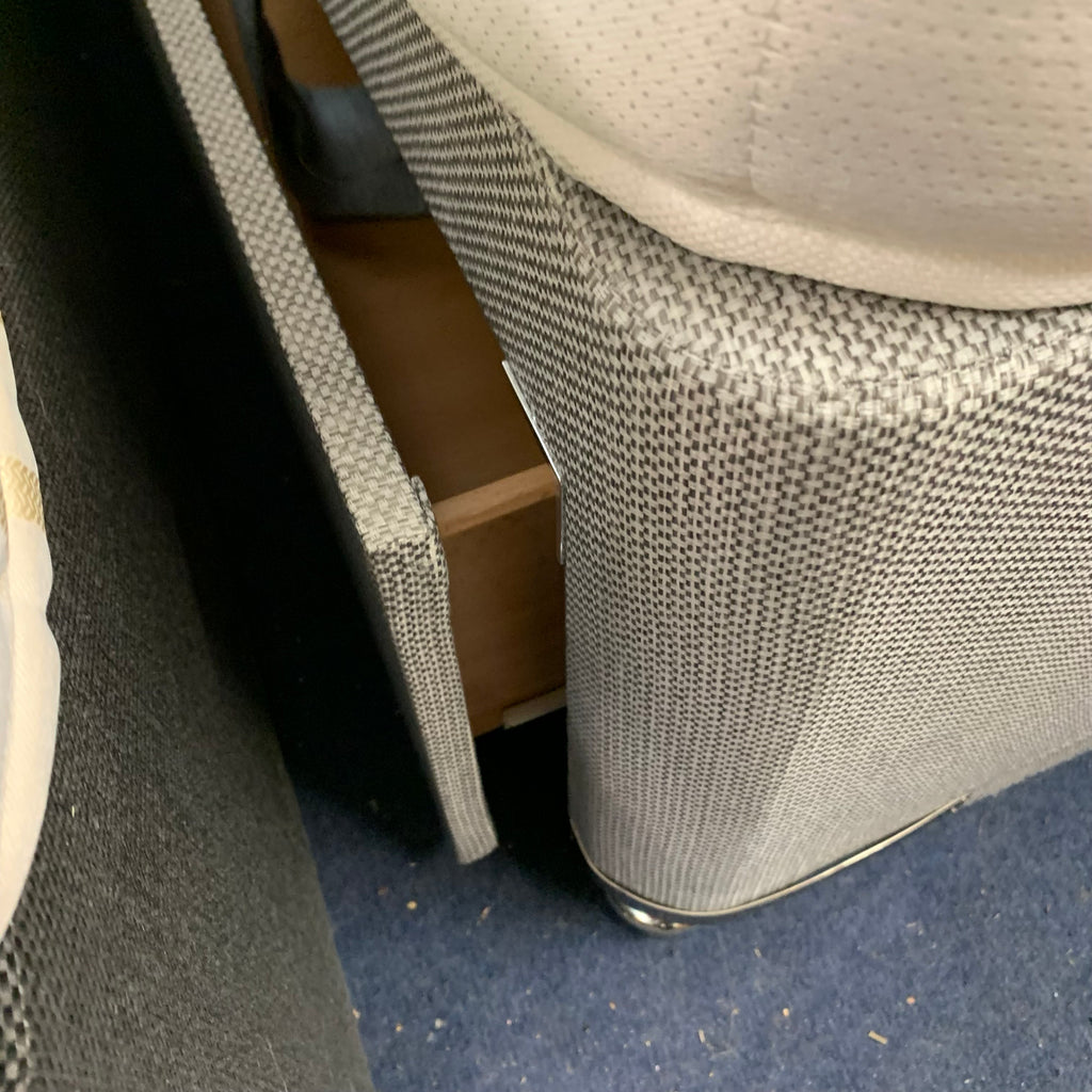 Light grey double divan bed base with 2x drawers, charcoal grey headboard with diamante details and mattress.