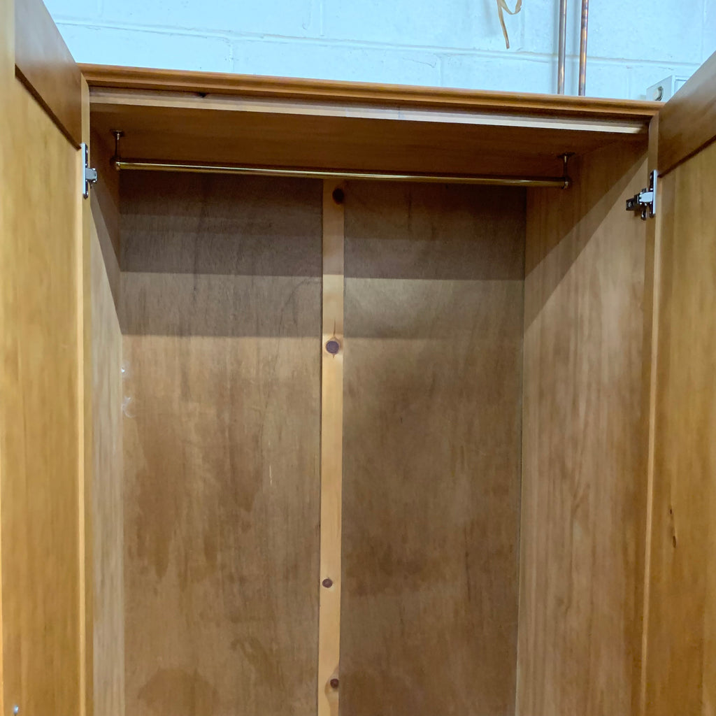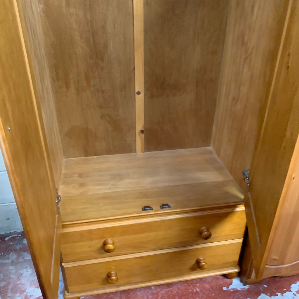 Wooden double wardrobe with 2x drawers at the bottom.