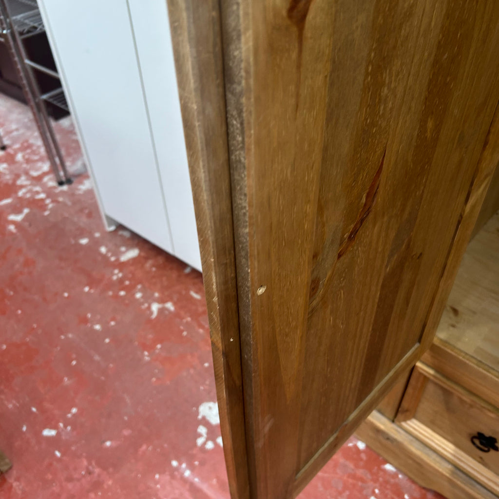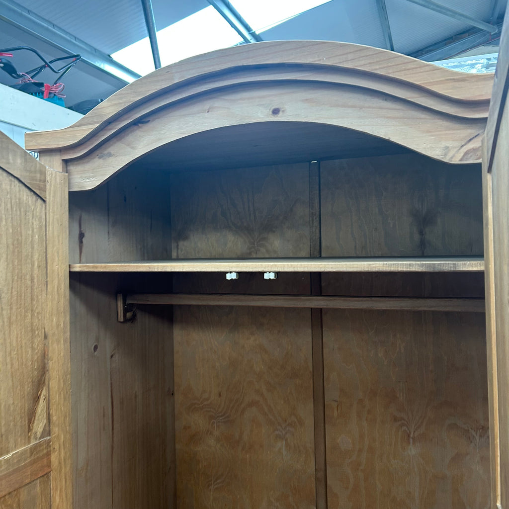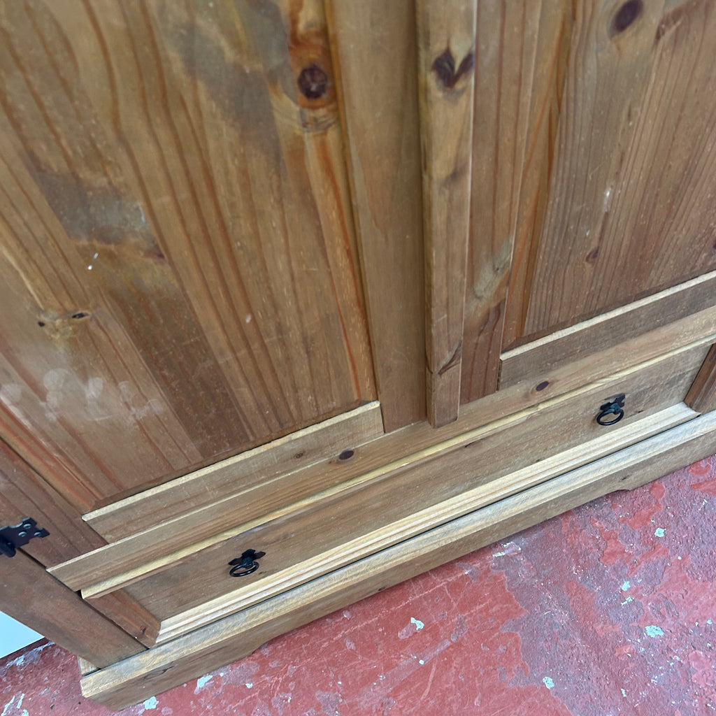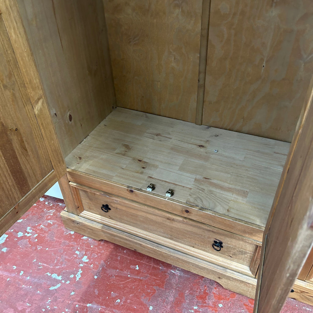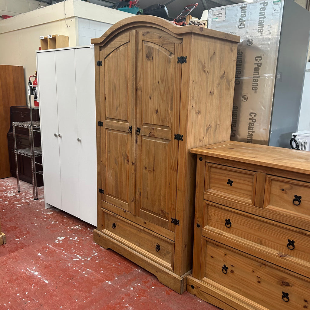 Wooden double wardrobe with 1x drawer at the bottom.