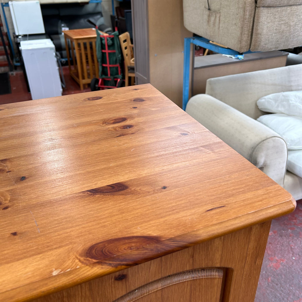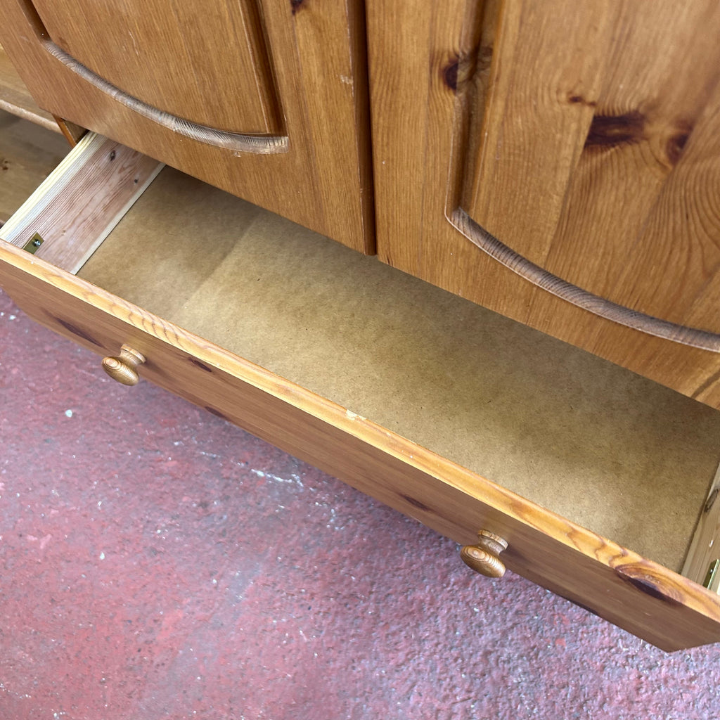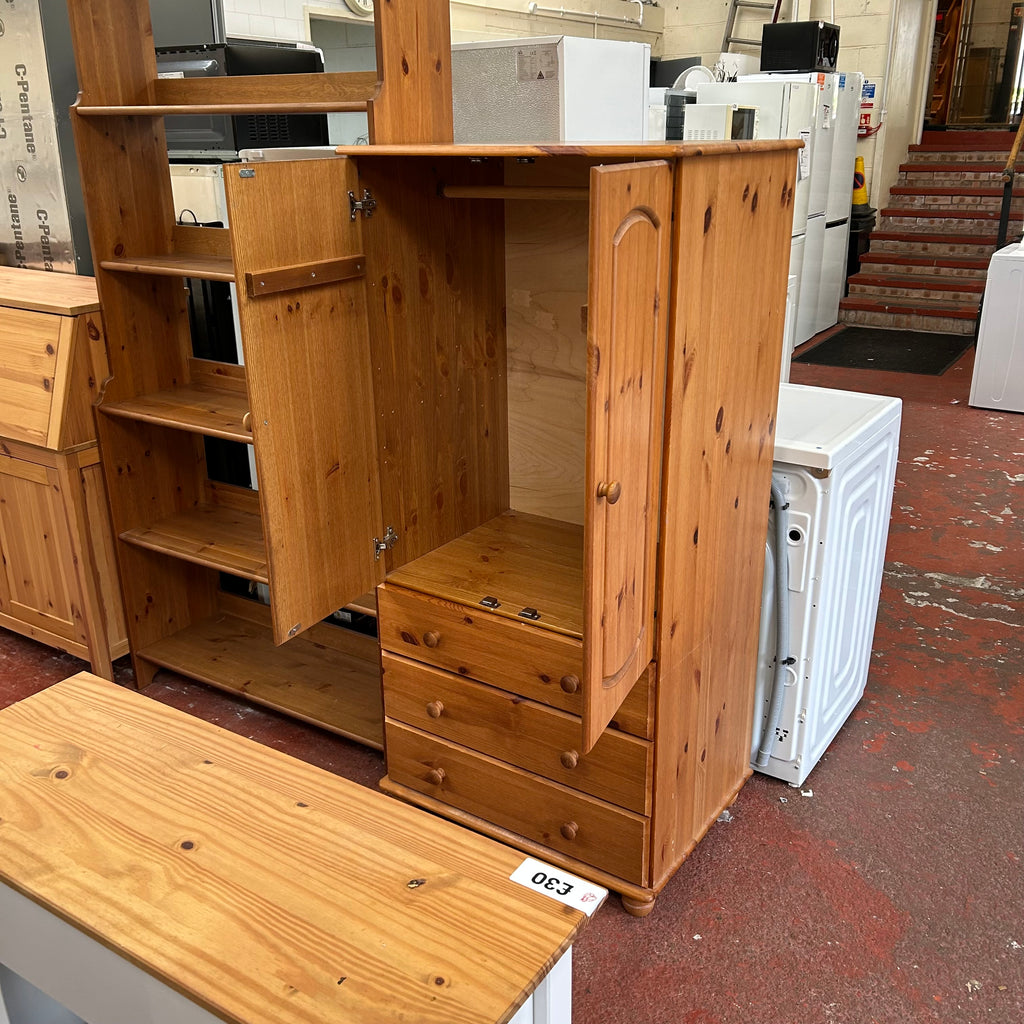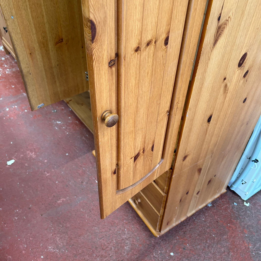 Small pine double wardrobe with 3x drawers at the bottom.