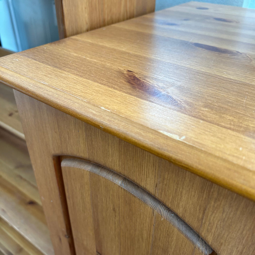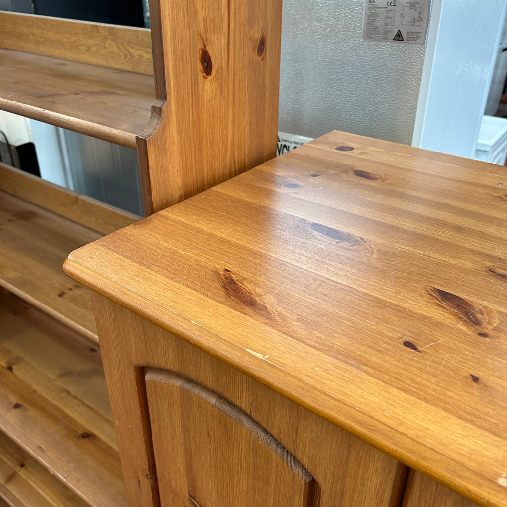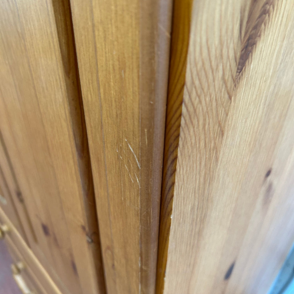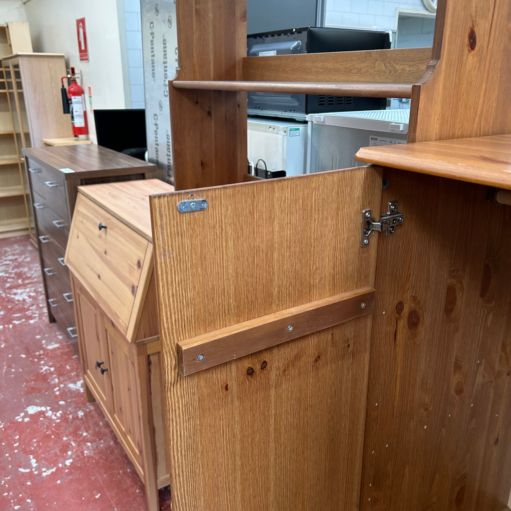 Small pine double wardrobe with 3x drawers at the bottom.