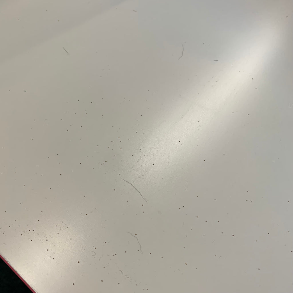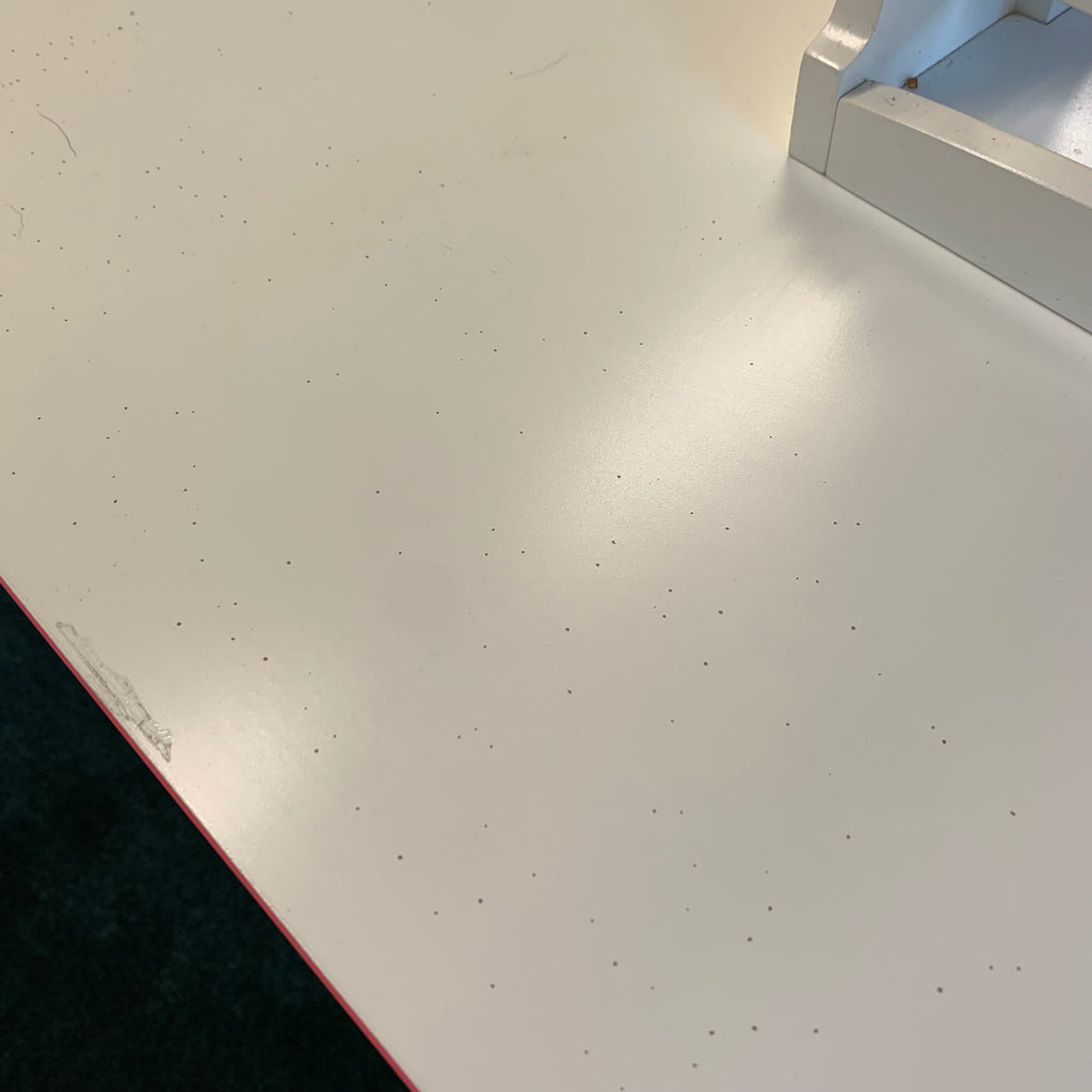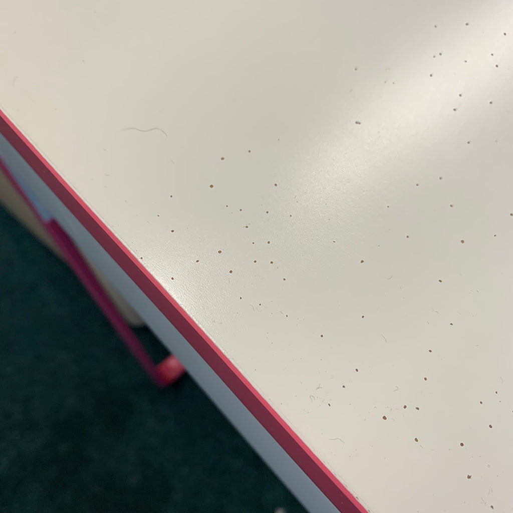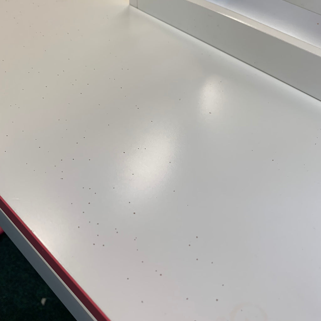 White dressing table with 1x drawer, shelves, mirror and painted pink details.