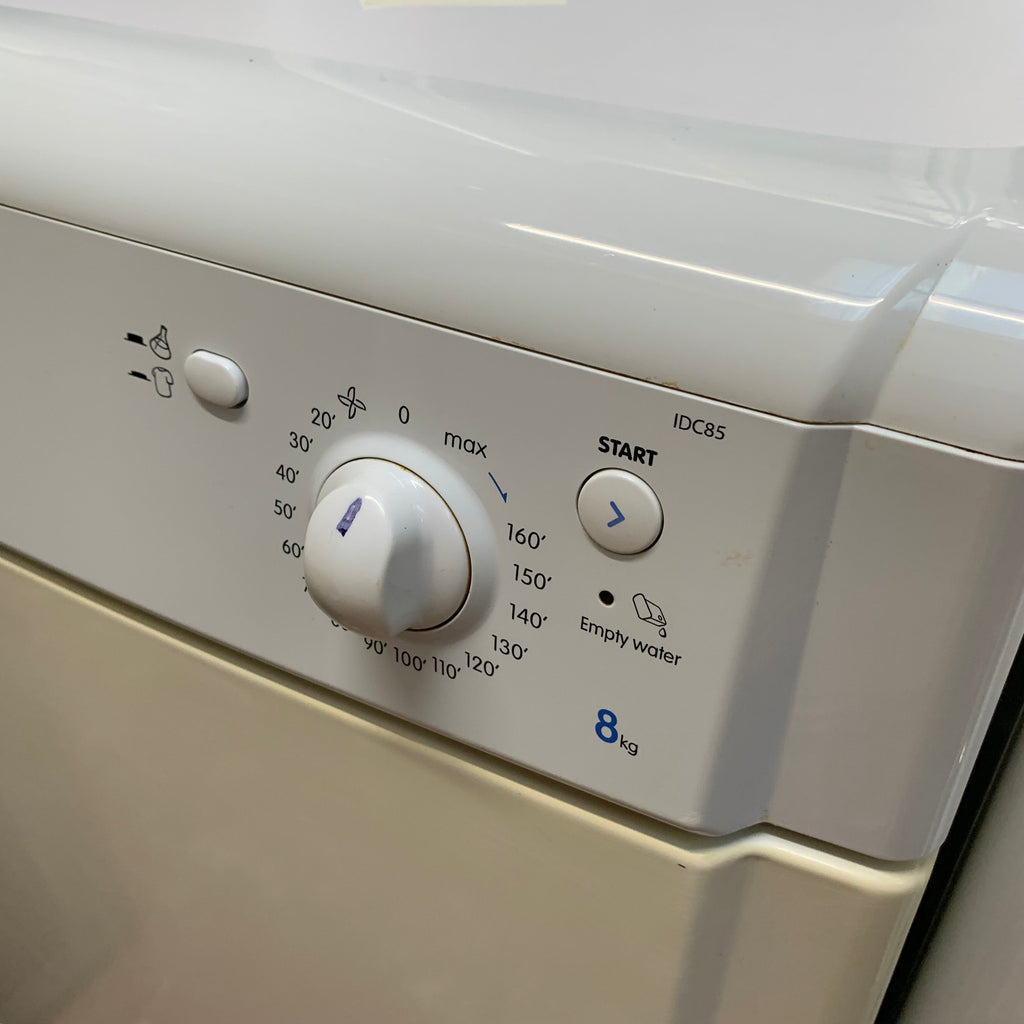 White Indesit 8kg condenser tumble dryer.