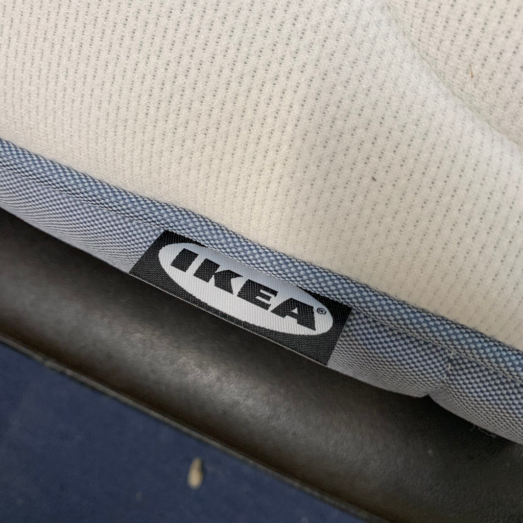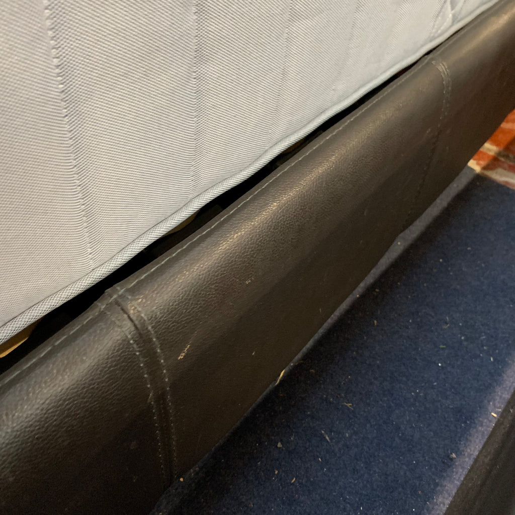 Black faux leather king size bed with IKEA memory foam mattress.