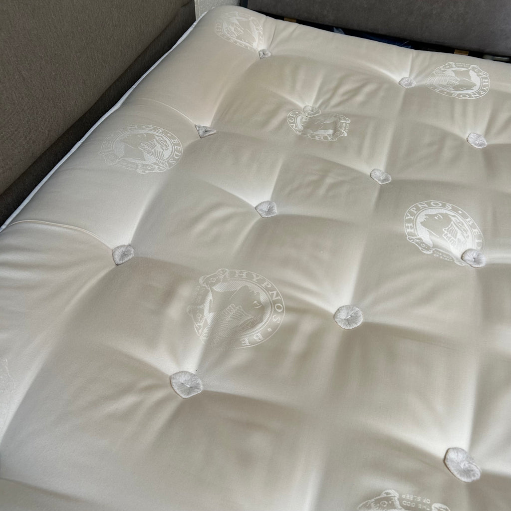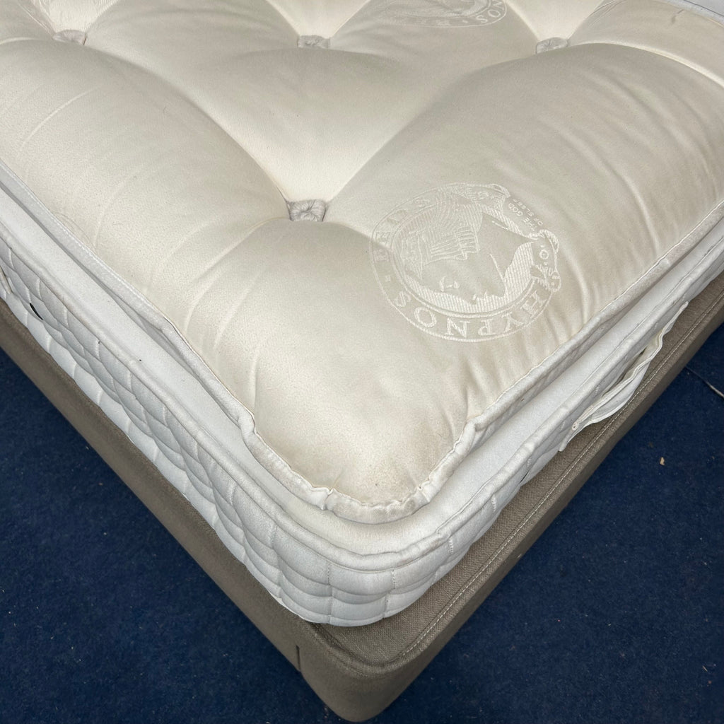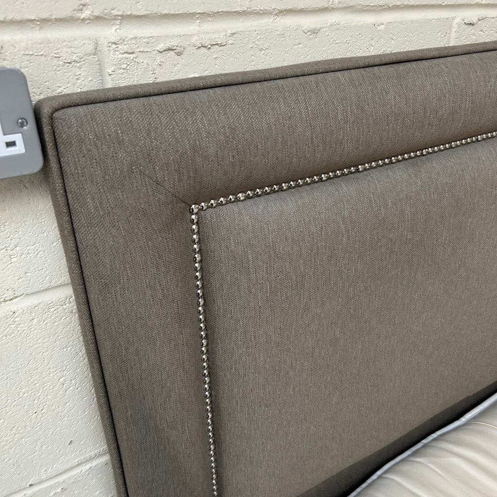 Brown king size divan bed base with 2x drawers, matching floor standing headboard and mattress.