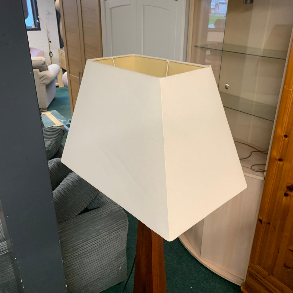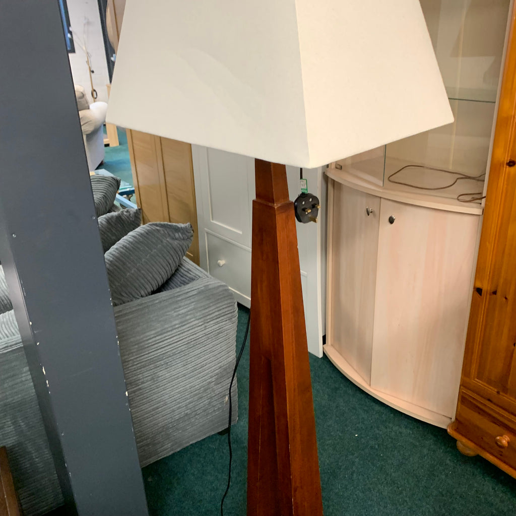 Wooden floor standing lamp with cream shade. Has slight marks to wood. Fully tested. 28 days warranty.