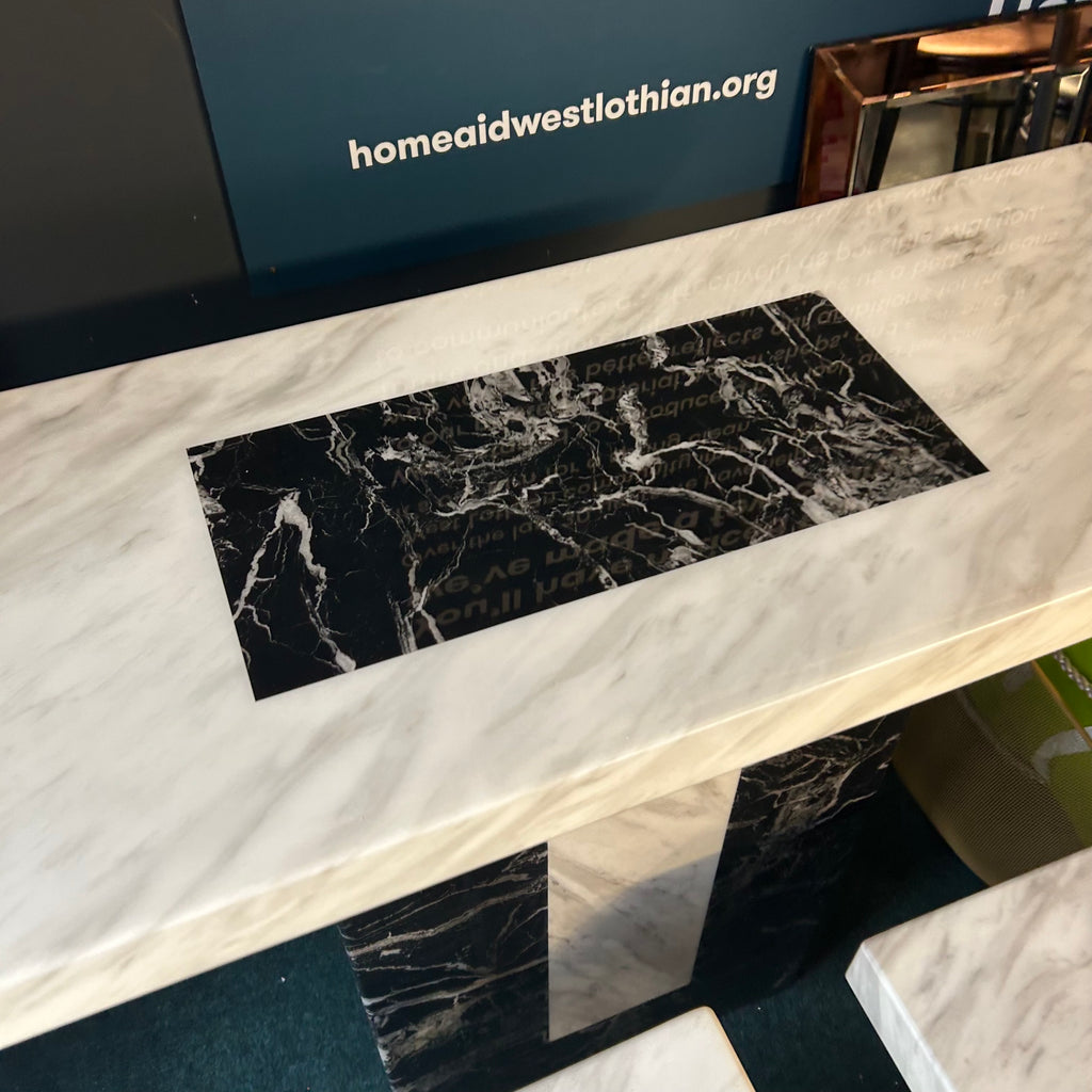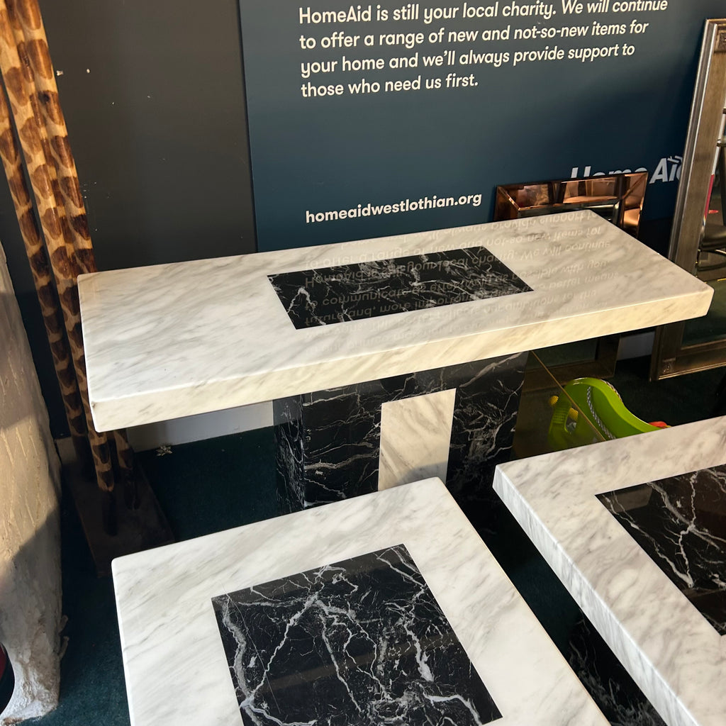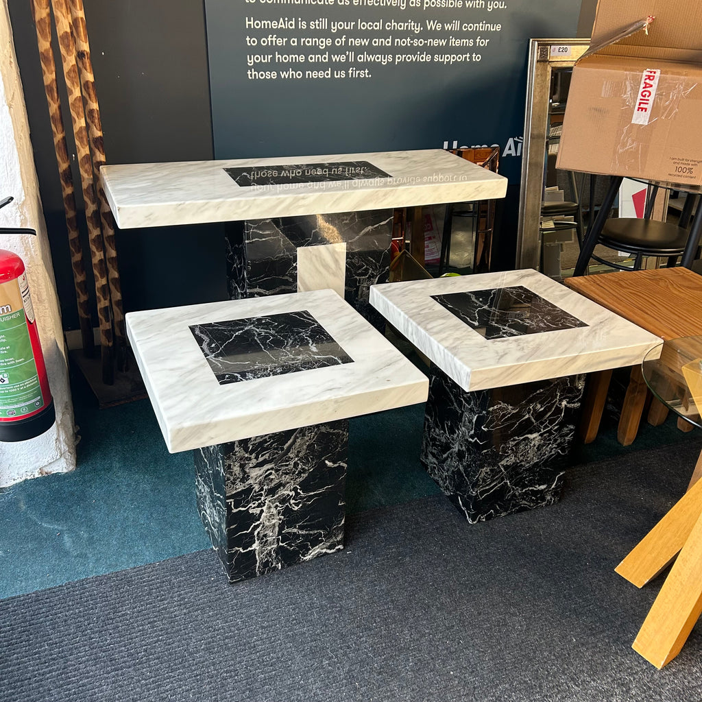 Marble console table and 2x side tables.