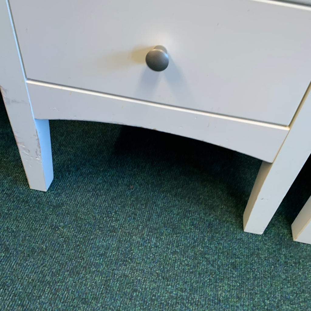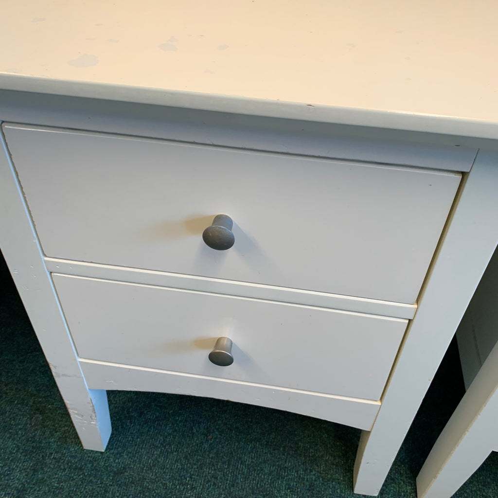 2x white Marks and Spencer's bedside cabinets with 2x drawers each.