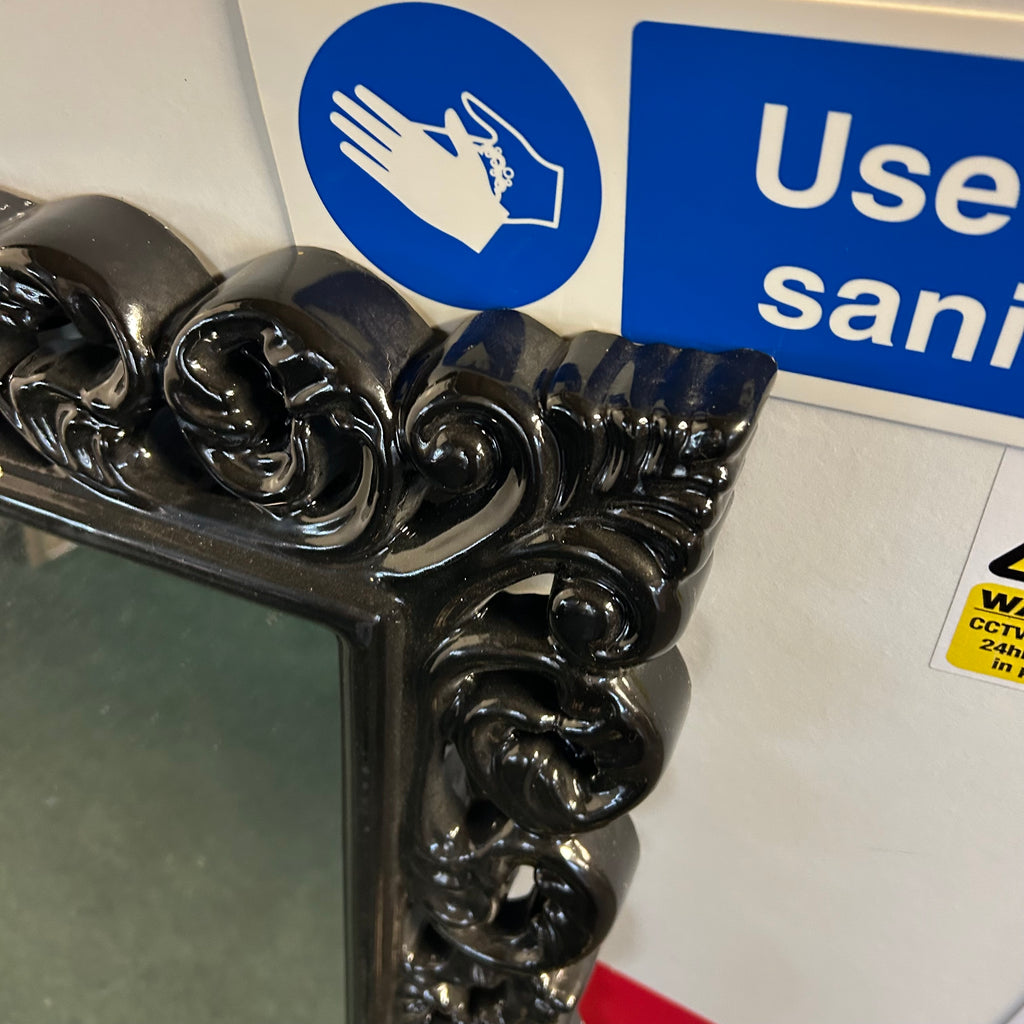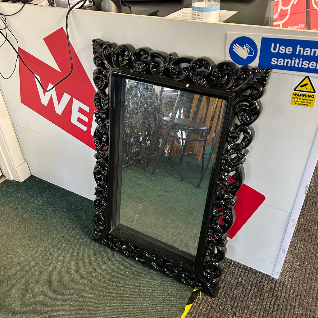 Black frame wall mirror. Has slight marks.