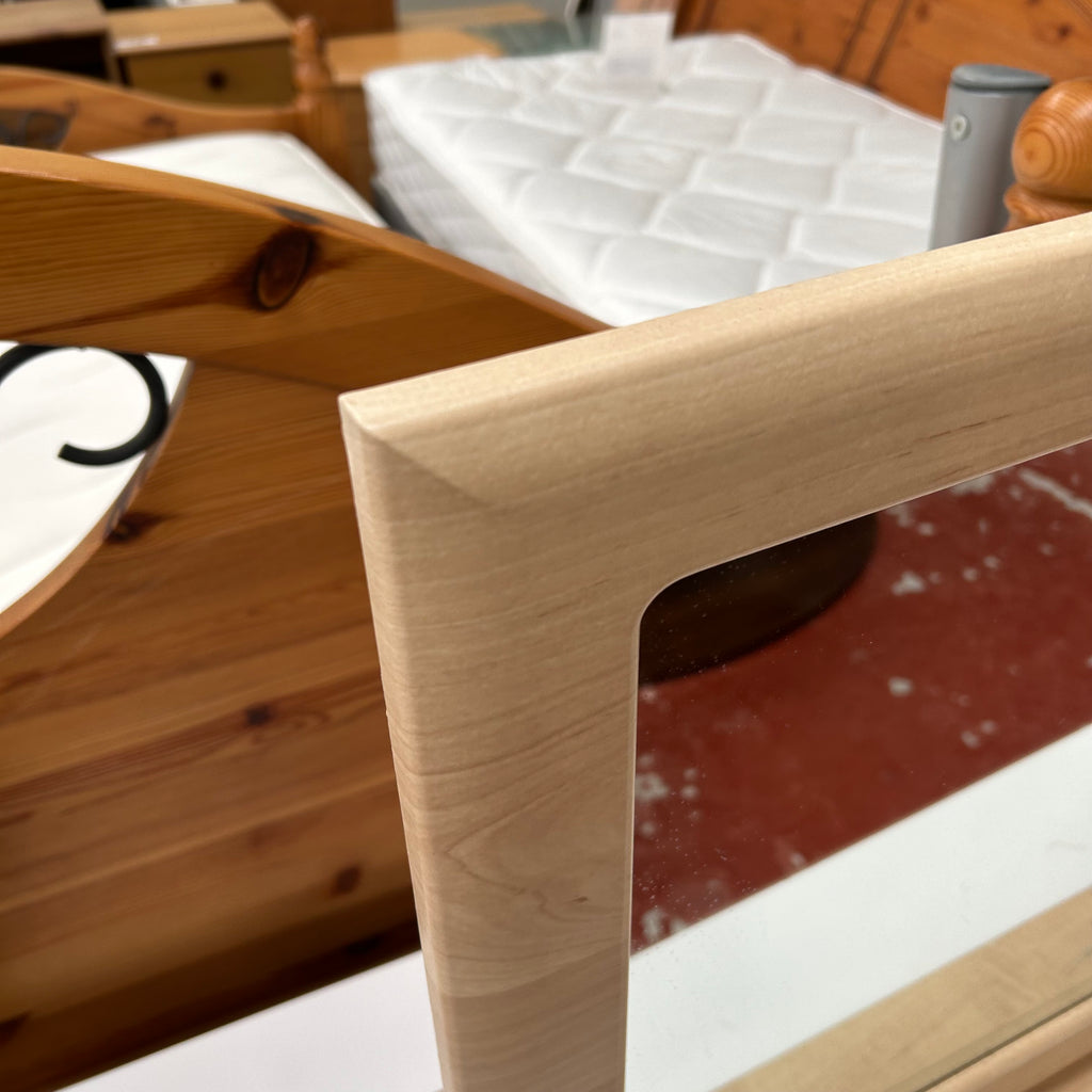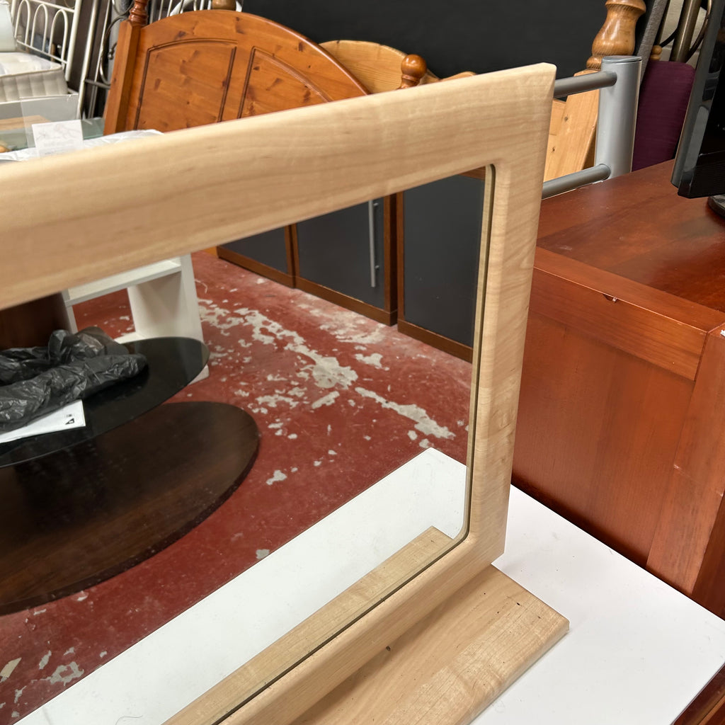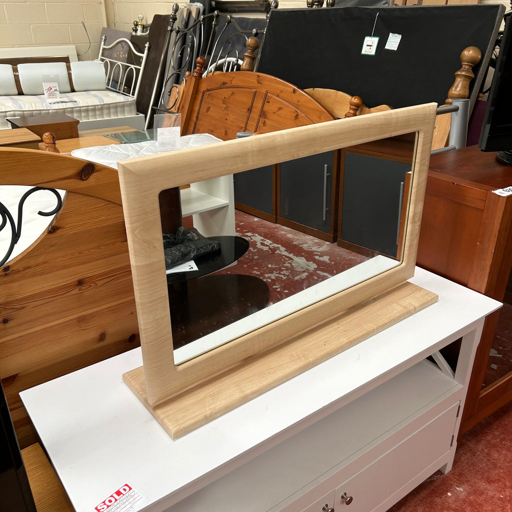 Light wood dressing table mirror.
