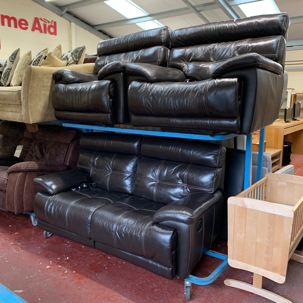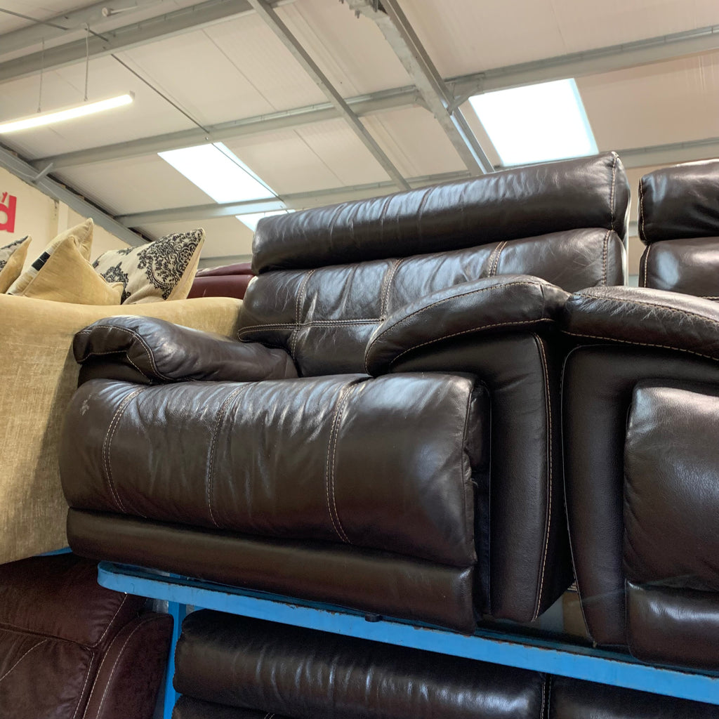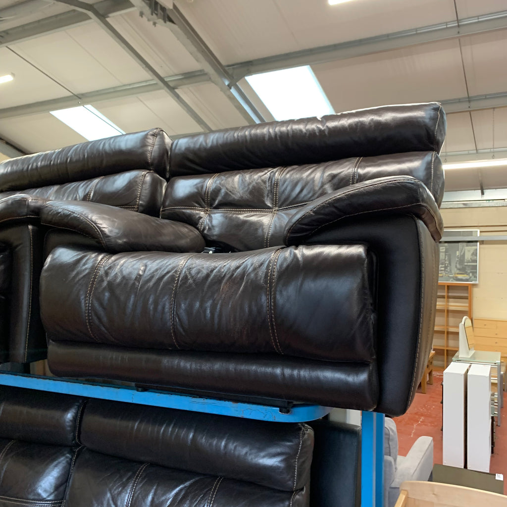 Brown leather 3 seater electric recliner sofa with matching armchair and manual recliner armchair.