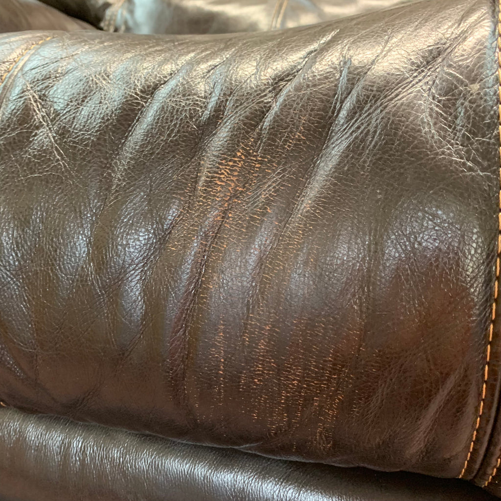 Manual recliner chair has slight damage to leather. Fully tested. 28 days warranty.
