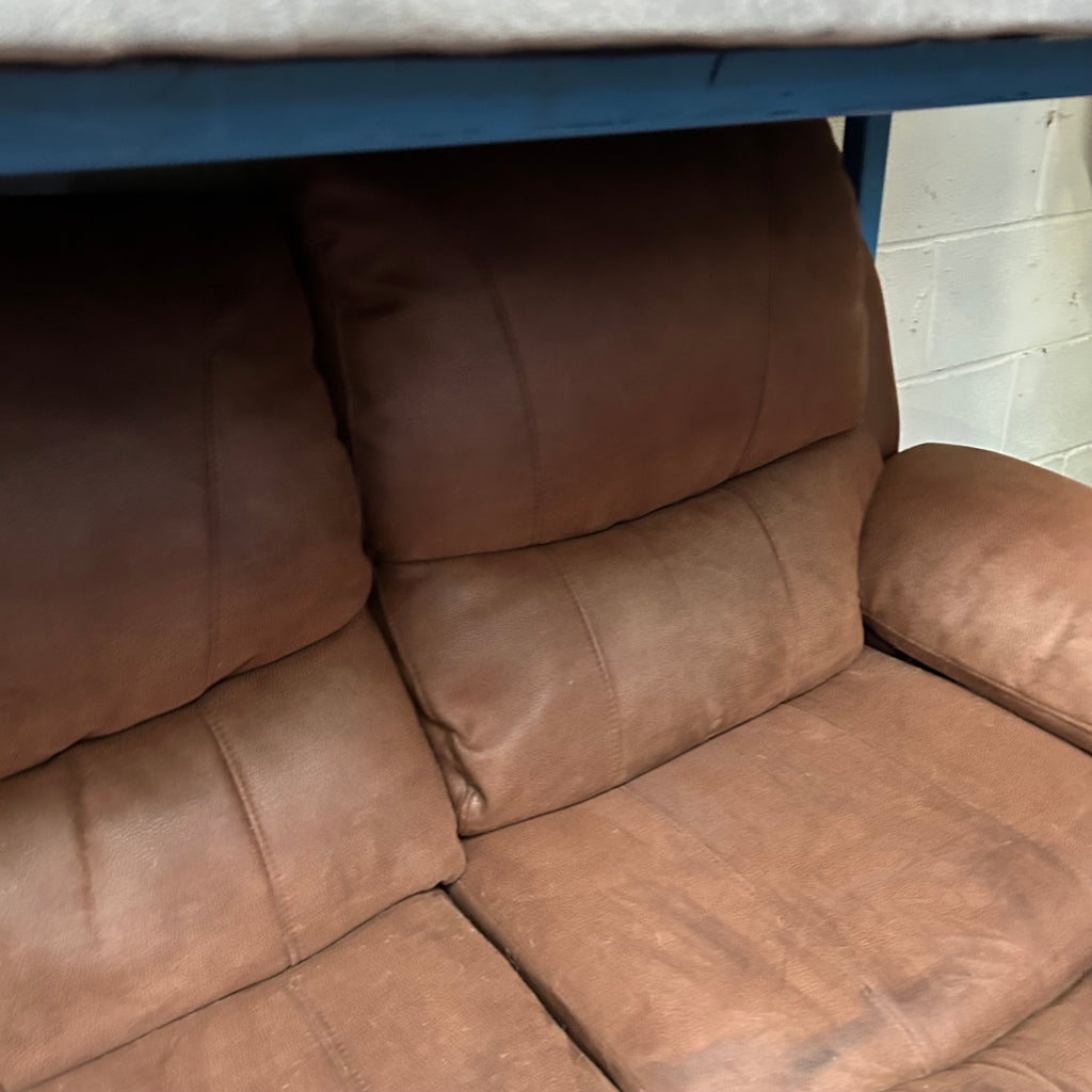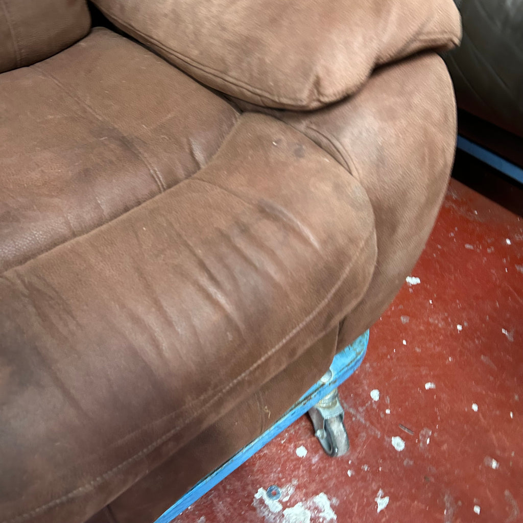 Brown 3 seater manual recliner sofa.