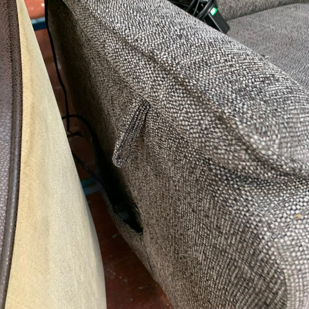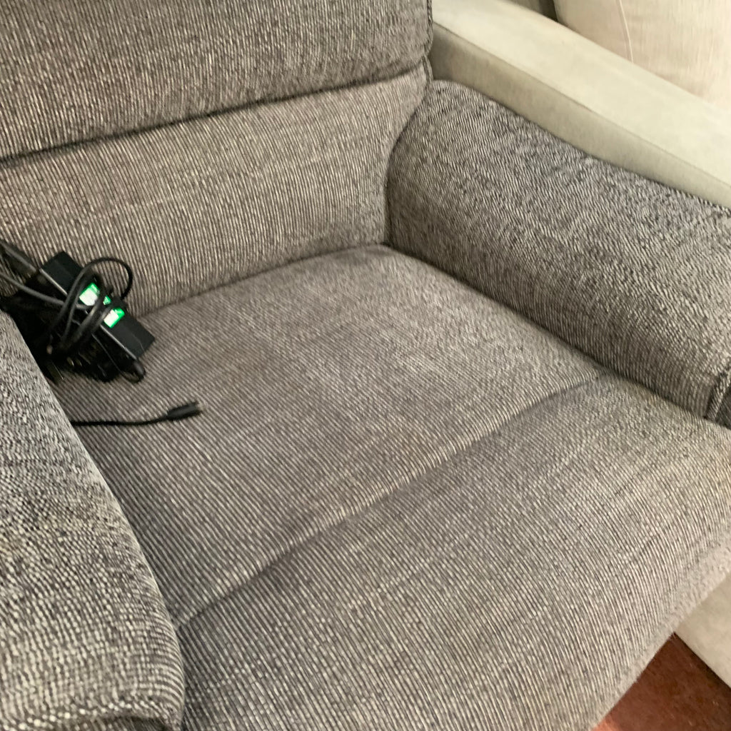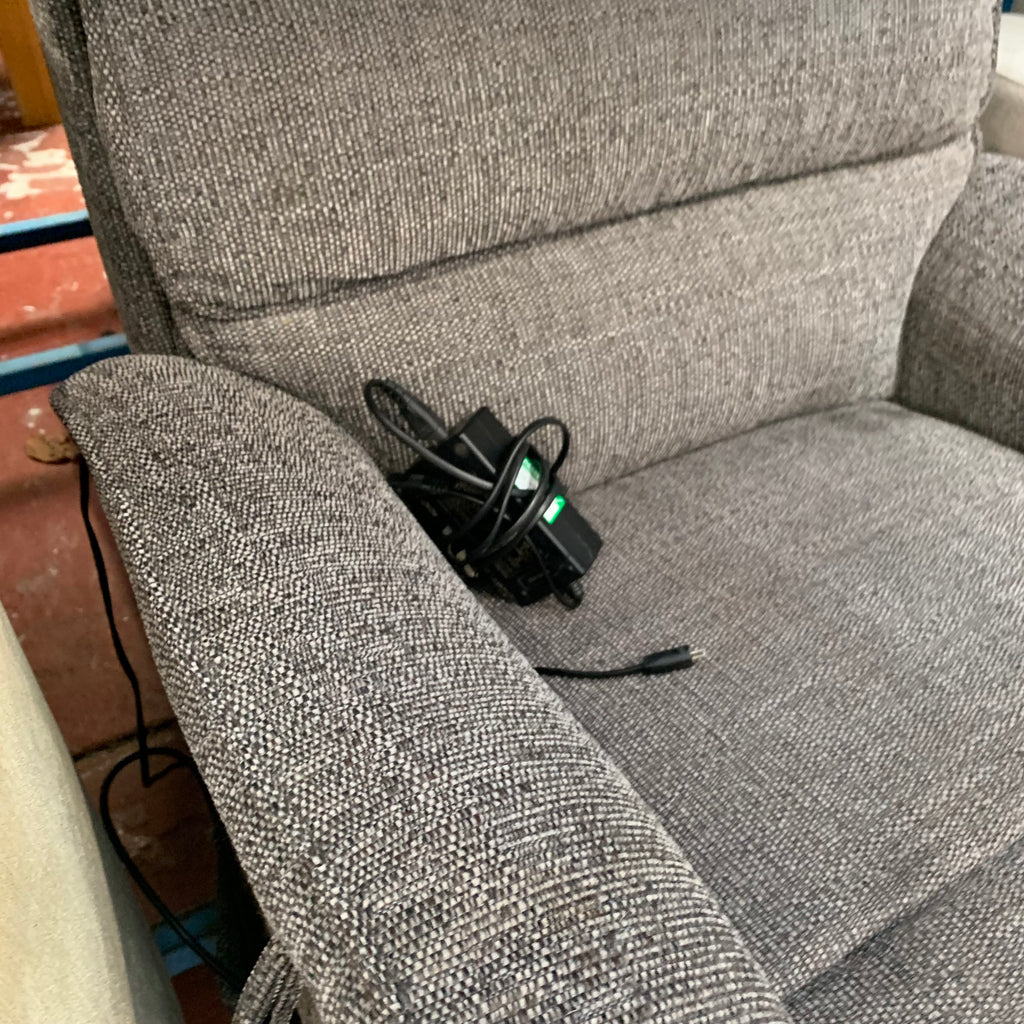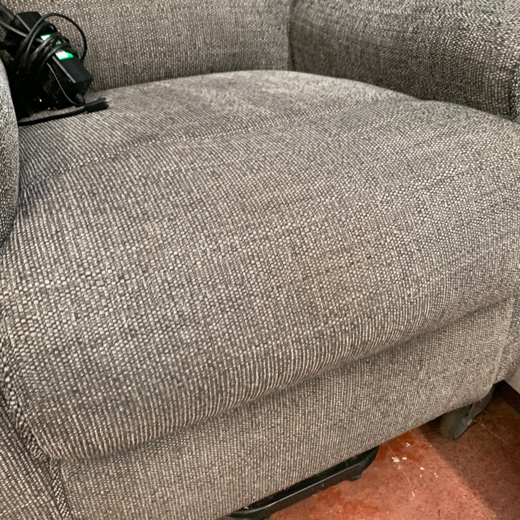 Grey rise and recliner armchair with remote.