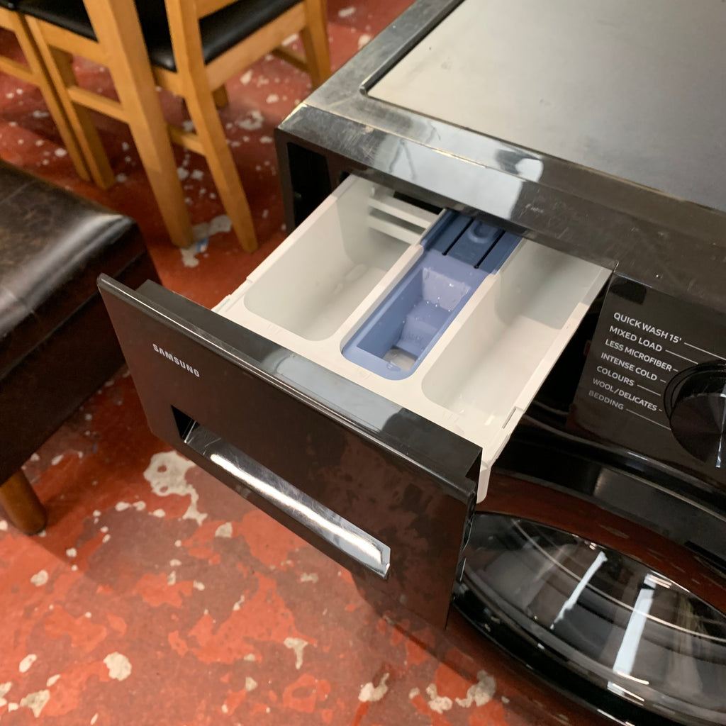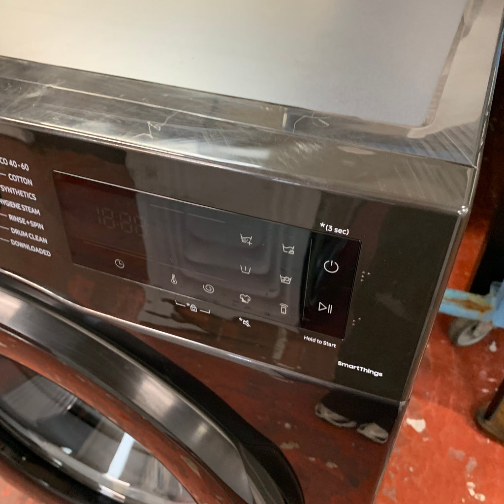 Black Samsung 9kg WiFi connected washing machine.