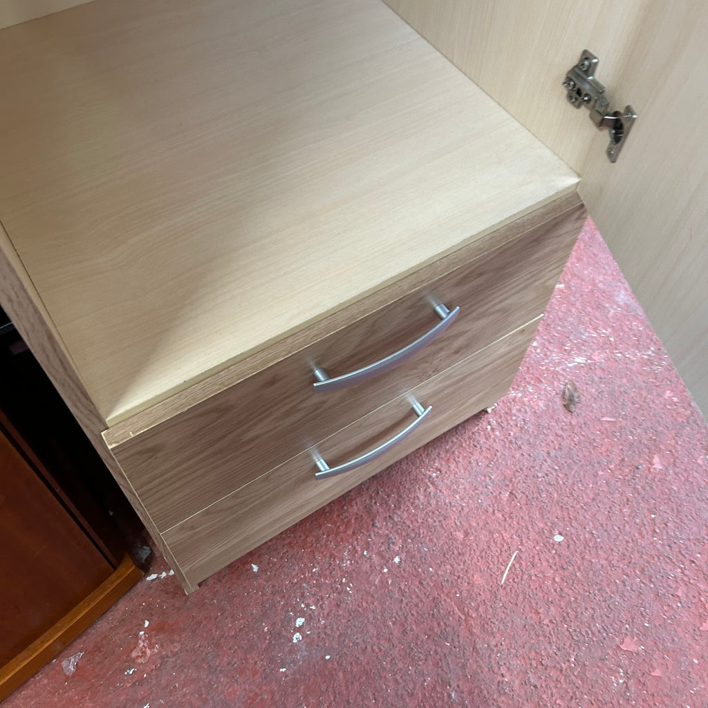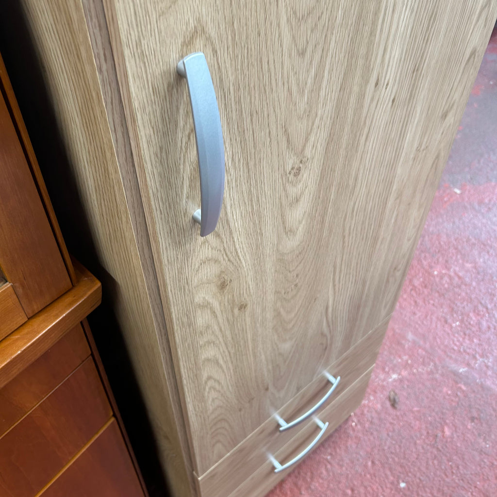 Tall wooden single wardrobe with 2x drawers at the bottom.