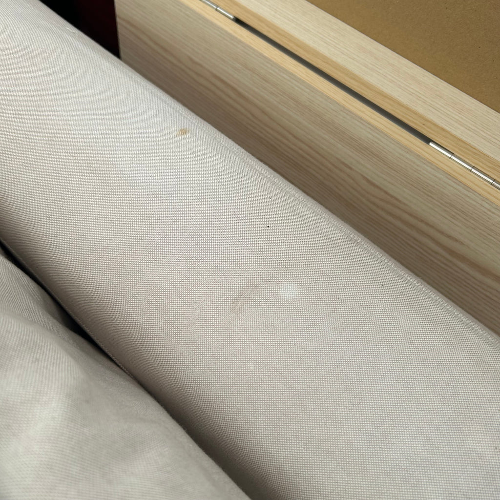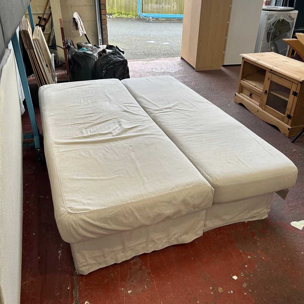Cream fold out sofa bed.