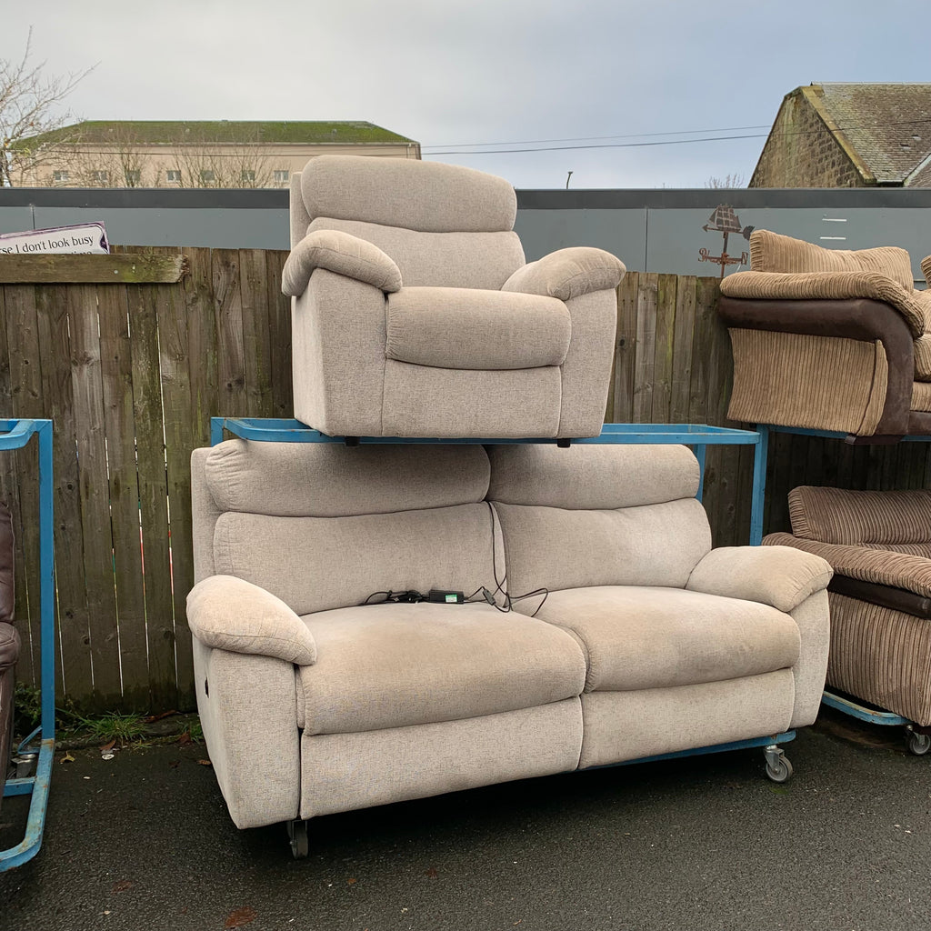 Light grey 3 seater electric recliner sofa with matching armchair.