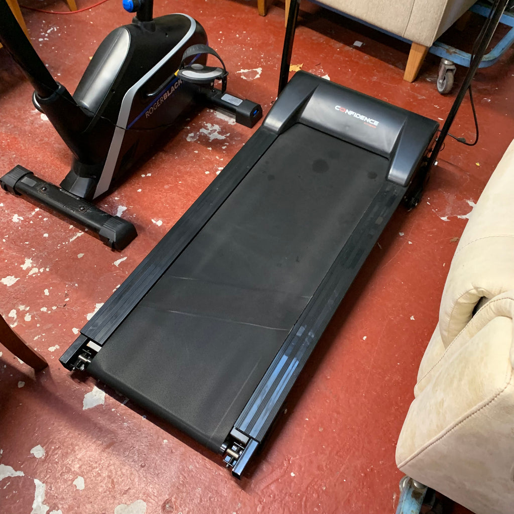 Black Confidence Fitness electric treadmill. Has slight marks. Fully tested. 28 days warranty.