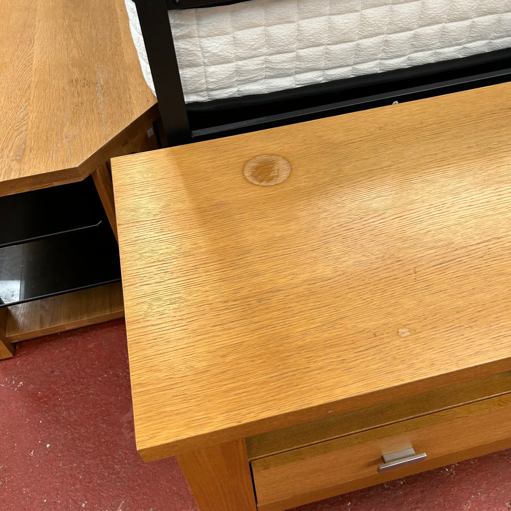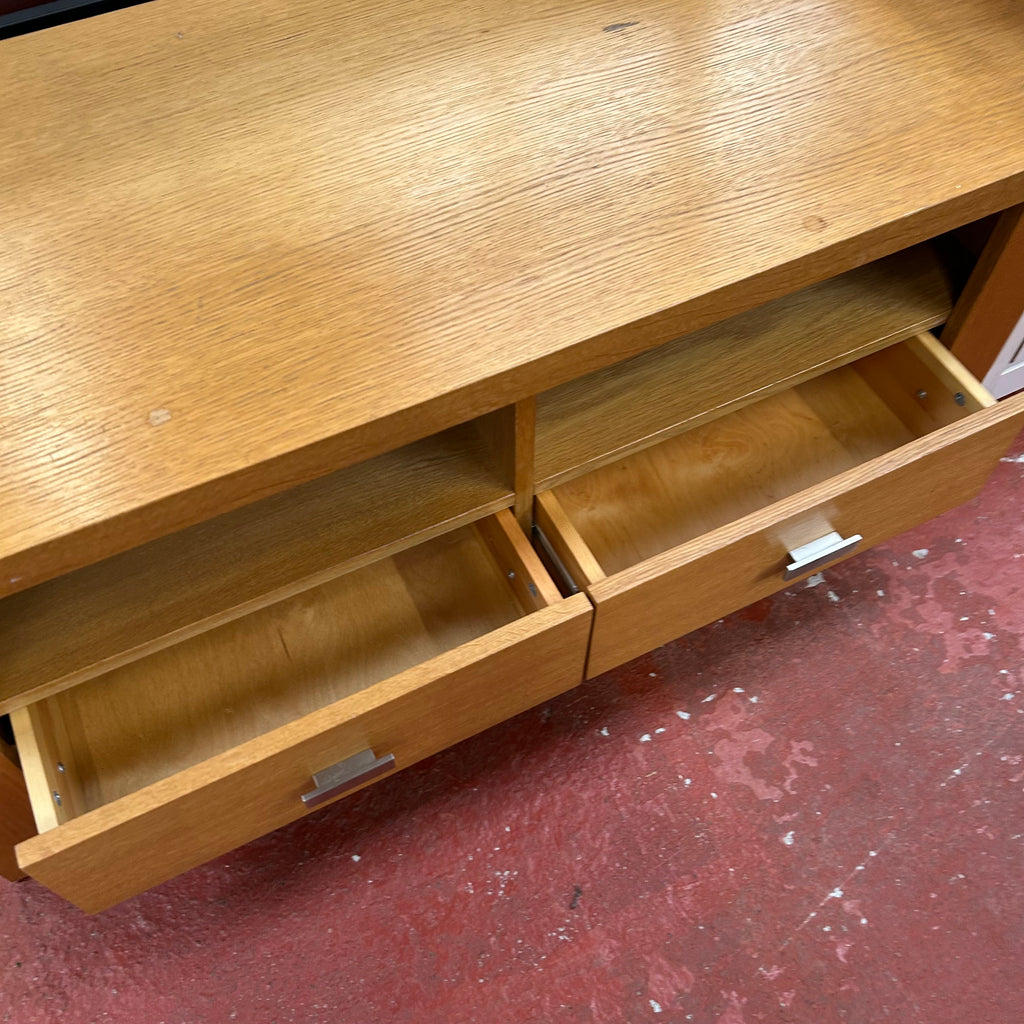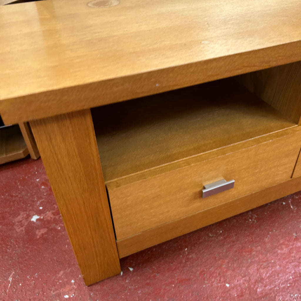 Wooden TV unit with drawers.