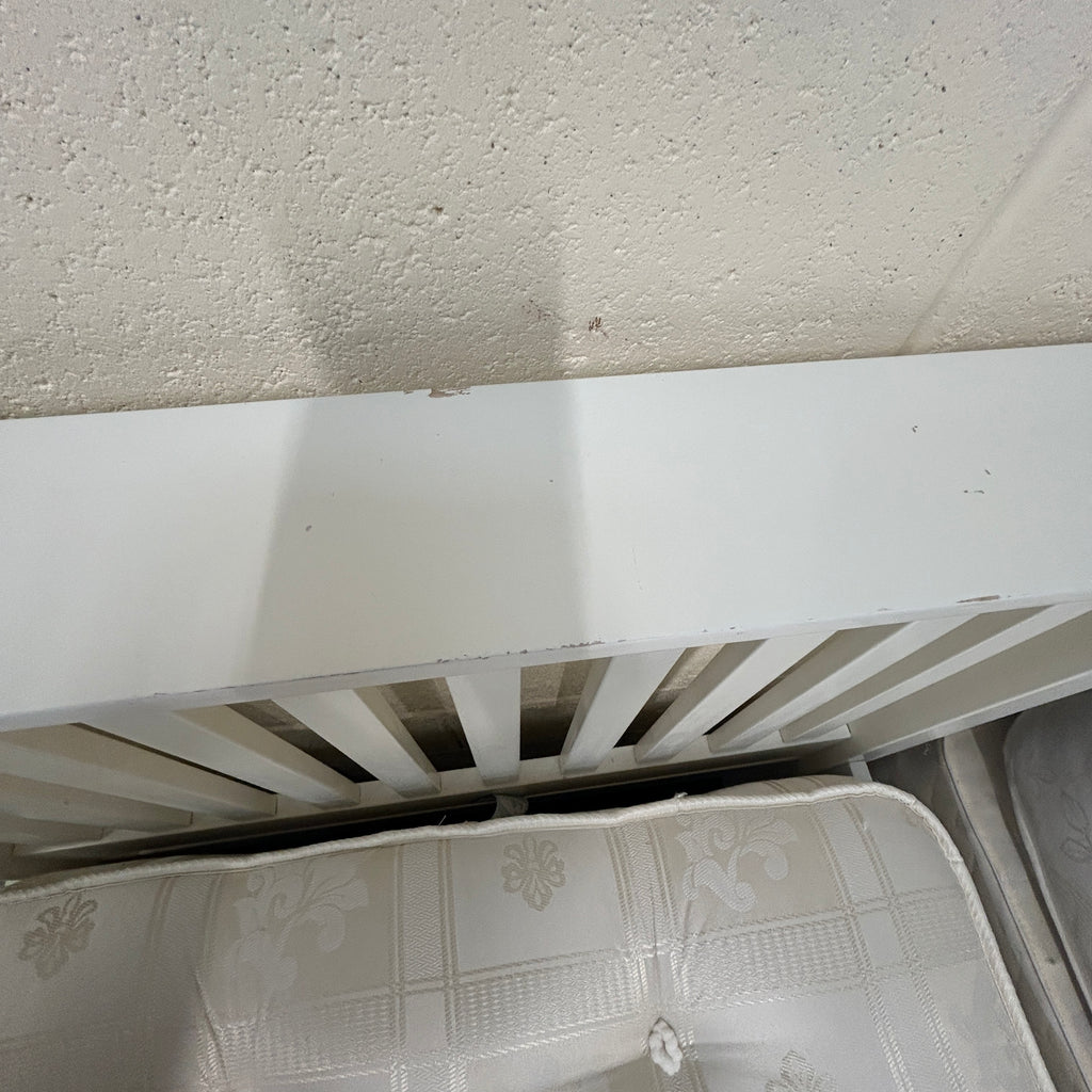 White solid wood single bed with mattress